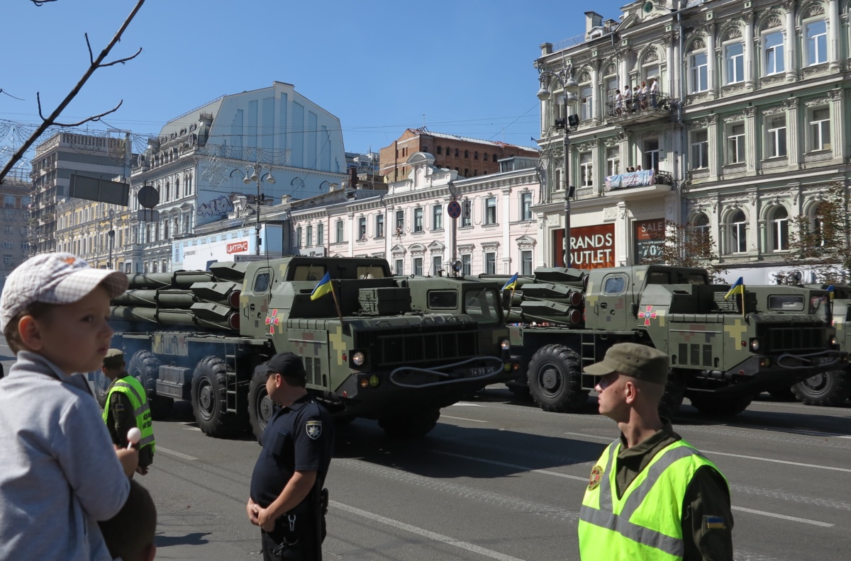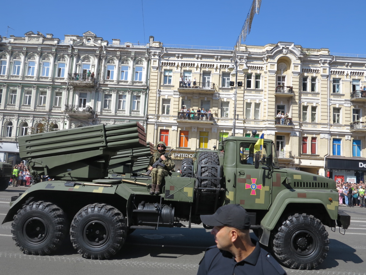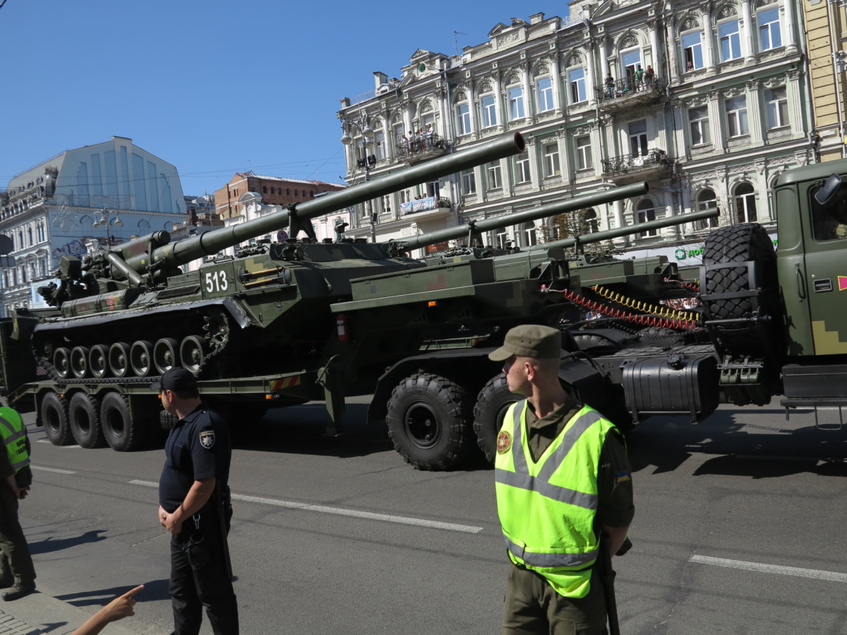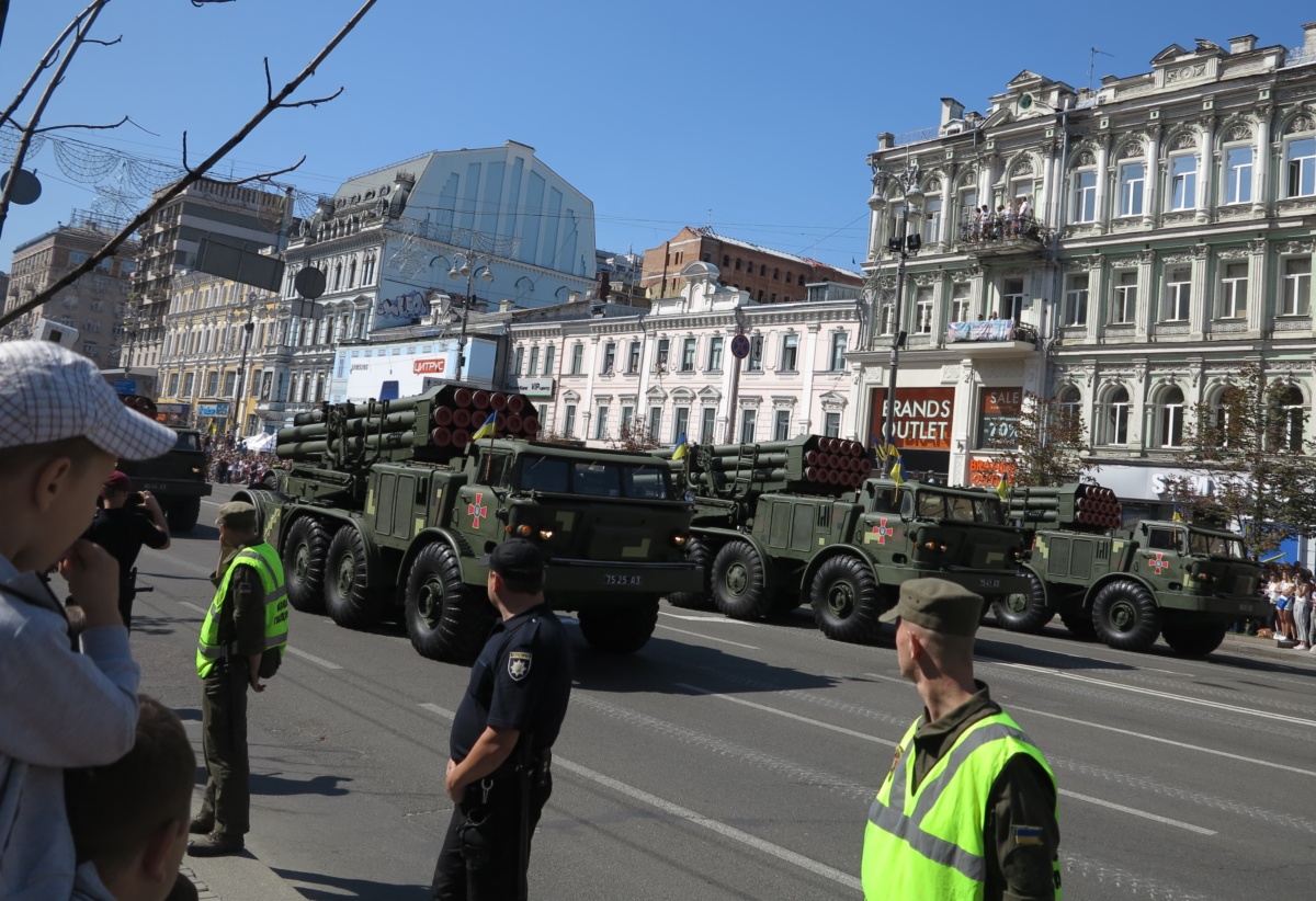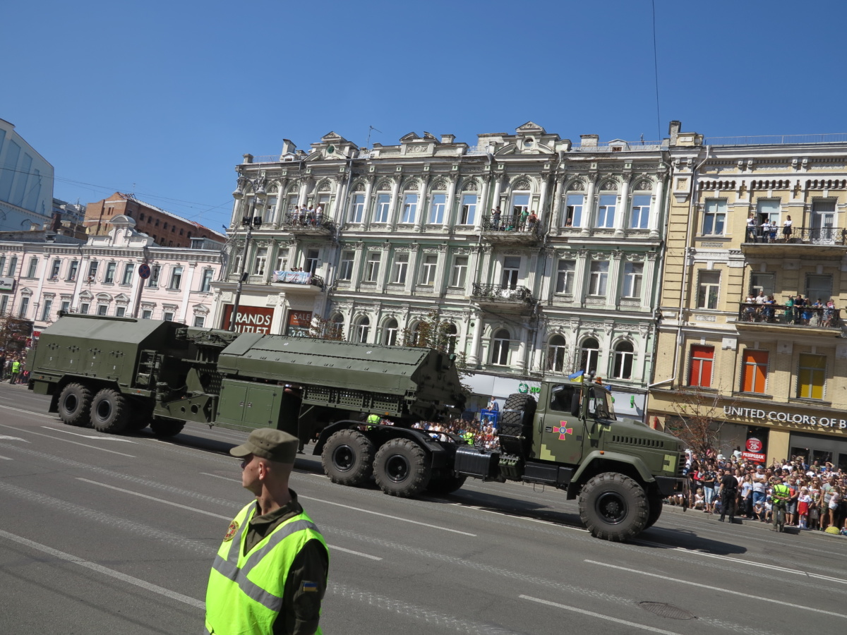 На военном параде в столице Украины впервые широкой публике были показаны новая самоходная артиллерийская установка “Богдана” на шасси автомобиля КрАЗ-6322 (6х6) с орудием 155 мм стандарта НАТО. Также впервые продемонстрировали новые РСЗО “Верба” и РСЗО “Ольха” – на шасси КрАЗ и МАЗ. По главной улице столицы прошел и перспективный оперативно-тактический ракетный комплекс “Гром-2” на оригинальном 5-осном шасси отечественной разработки.