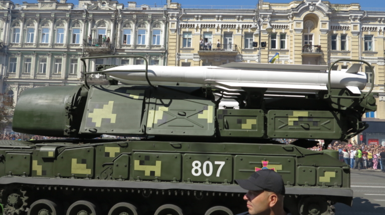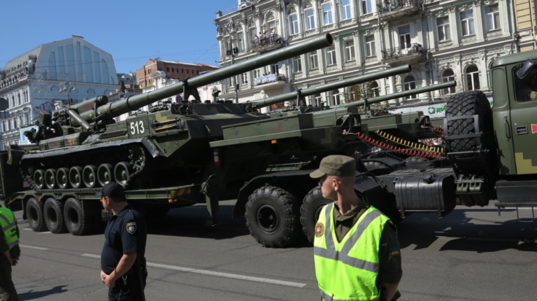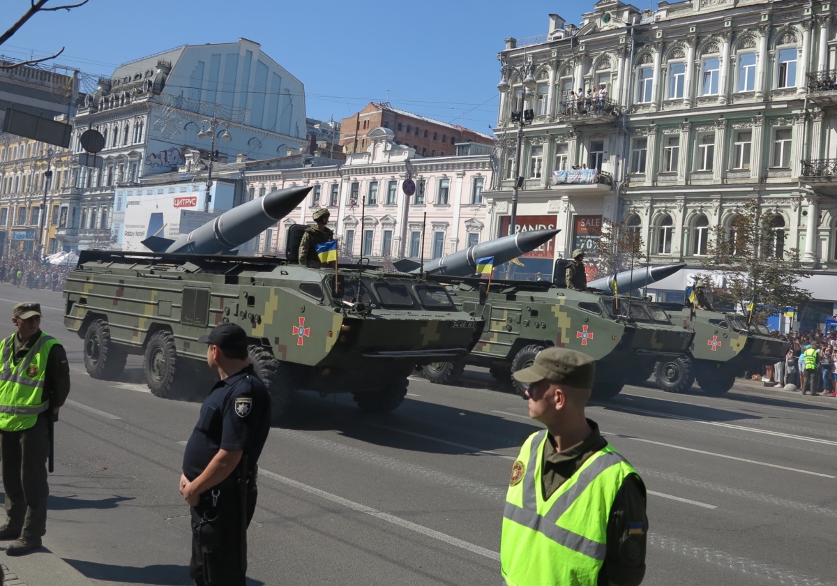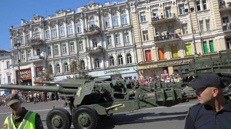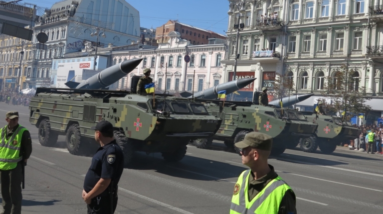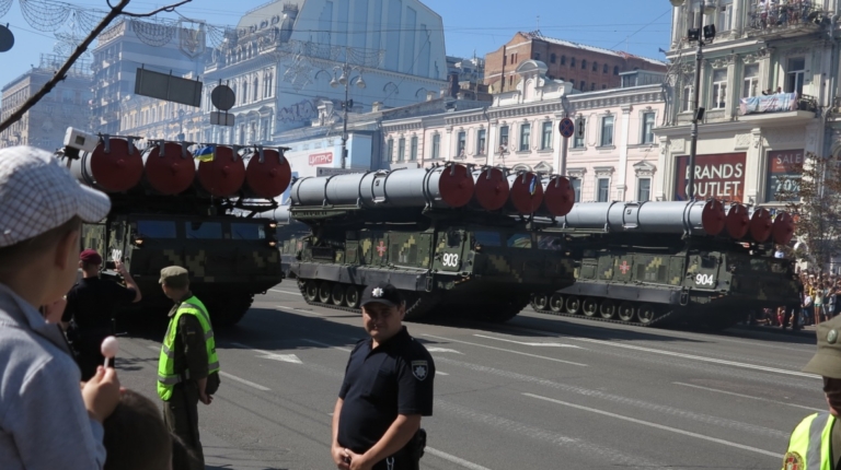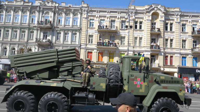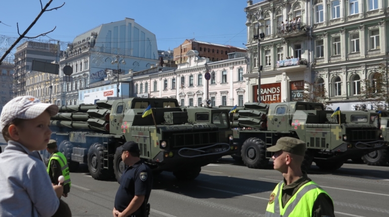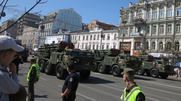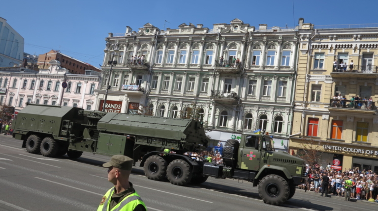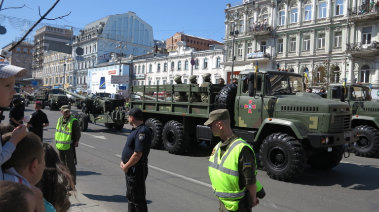 На военном параде в столице Украины впервые широкой публике были показаны новая самоходная артиллерийская установка “Богдана” на шасси автомобиля КрАЗ-6322 (6х6) с орудием 155 мм стандарта НАТО. Также впервые продемонстрировали новые РСЗО “Верба” и РСЗО “Ольха” – на шасси КрАЗ и МАЗ. По главной улице столицы прошел и перспективный оперативно-тактический ракетный комплекс “Гром-2” на оригинальном 5-осном шасси отечественной разработки.