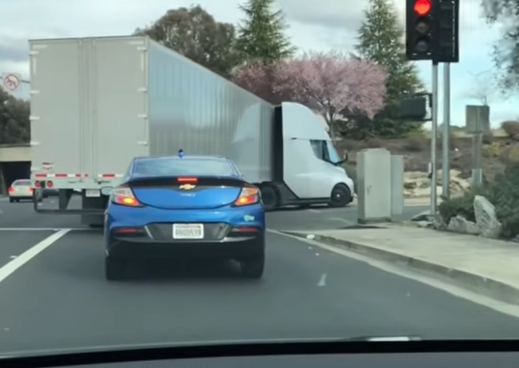 Тягач на электротяге Tesla Semi еле догнали на трассе (видео)