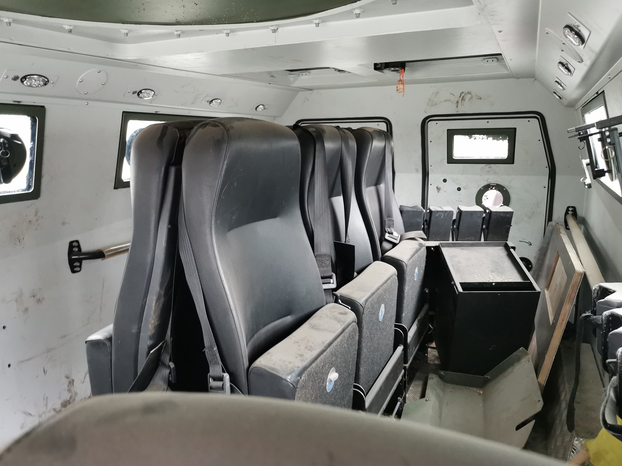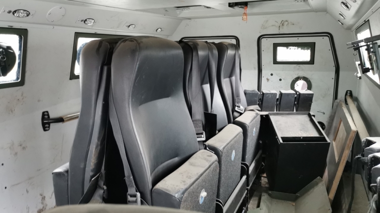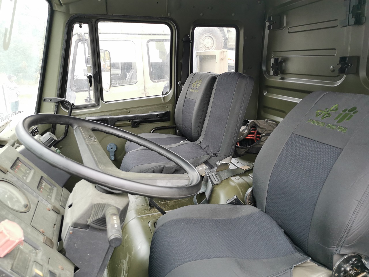 Демонструвався і ще один спеціальний DAF-Leyland 45.150 (4х4) – як мобільна станція техобслуговування та ремонту. Наші захисники вже отримали 26 таких машин, а всього цього року заплановано поставити 50 од. Вартість одного автомобіля – 924 тис. грн. Кузов укомплектовано необхідним інструментом, верстатами, домкратами та зварювальним апаратом. Живлення забезпечує генератор на 7,5 кВт. На передньому бампері можна побачити кранову стрілу.