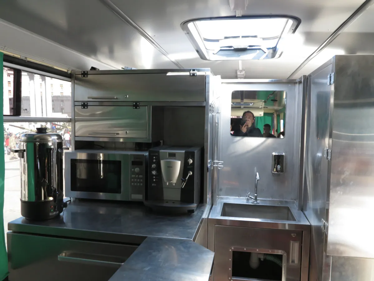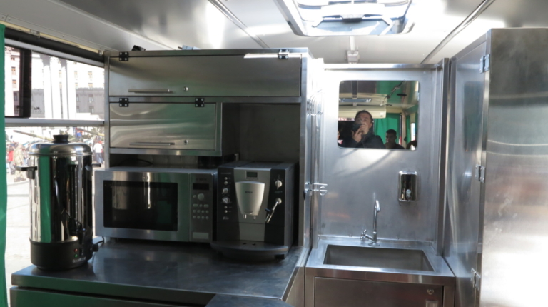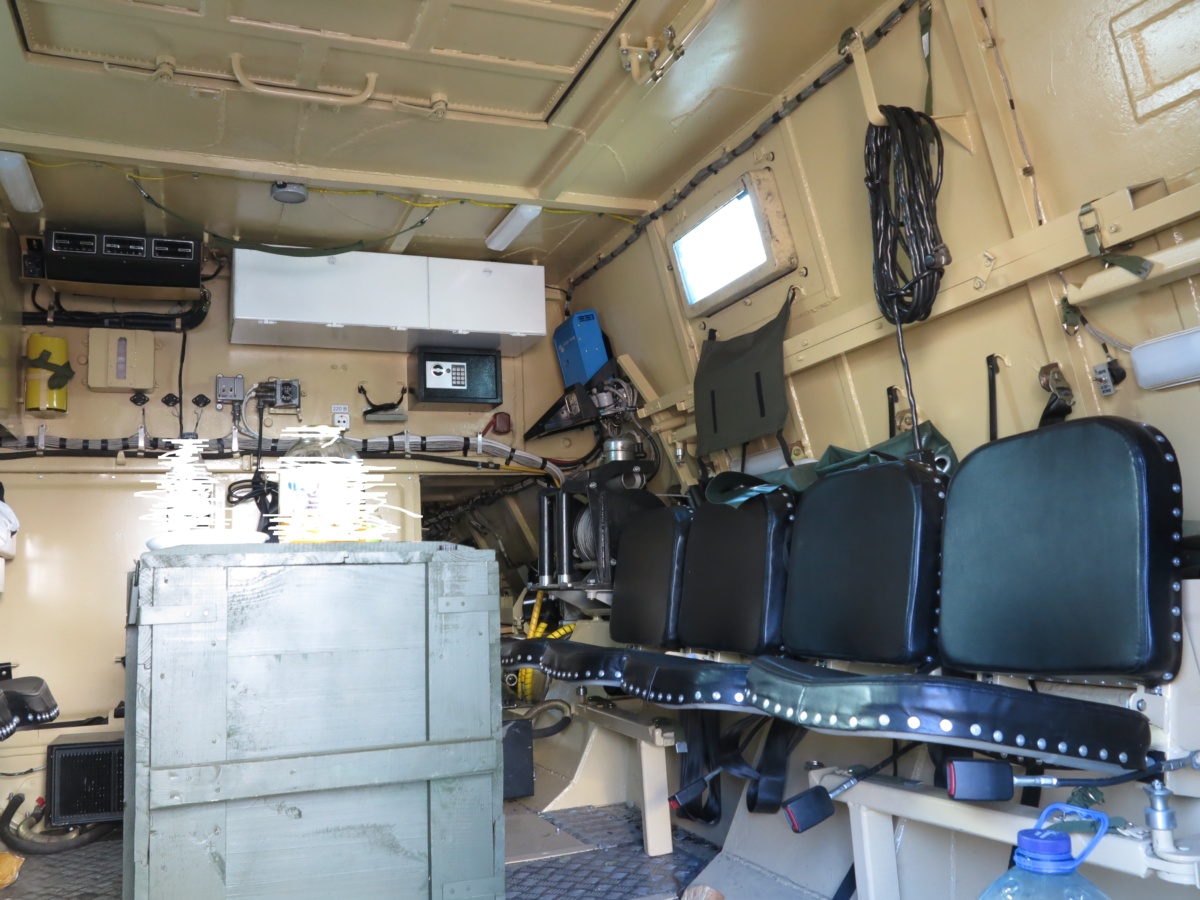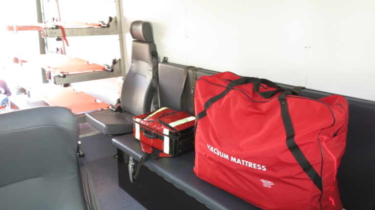 Машина представлена в санитарном варианте – с гидравлической системой погрузки носилок. Кузов автобуса сделан из композитных материалов. Высокую проходимость обеспечивает полноприводное шасси MAN TGM 13.240 (4х4).