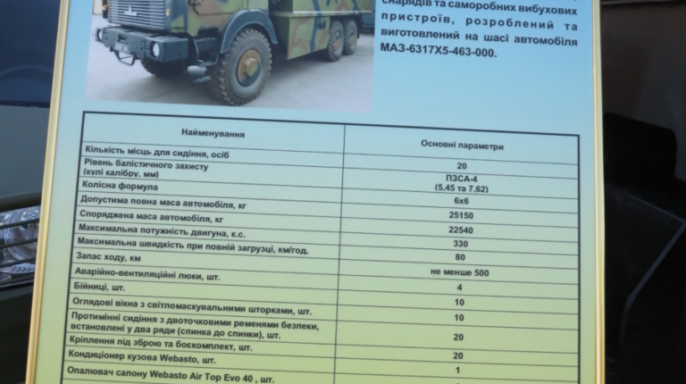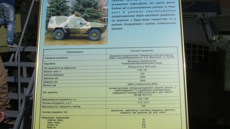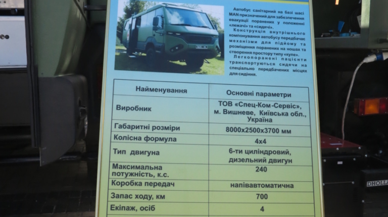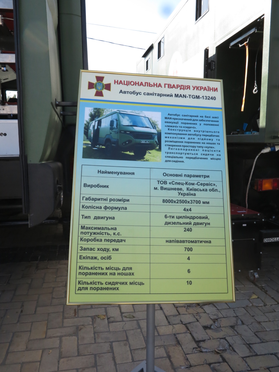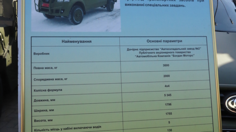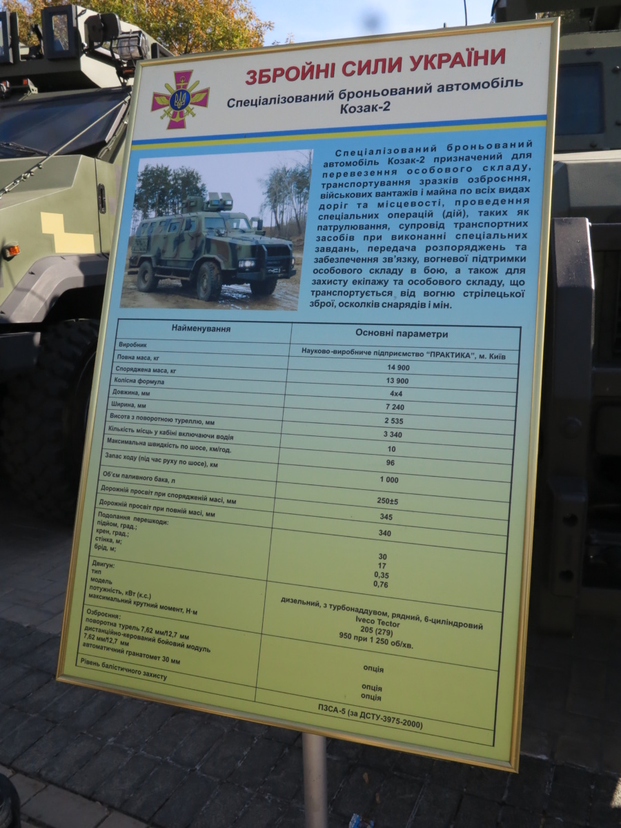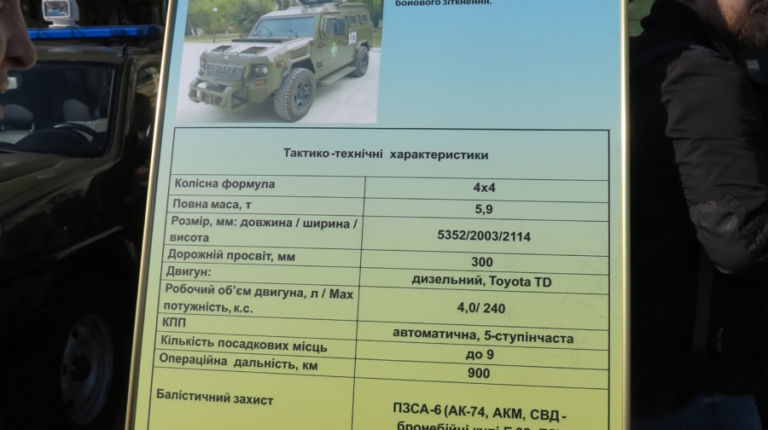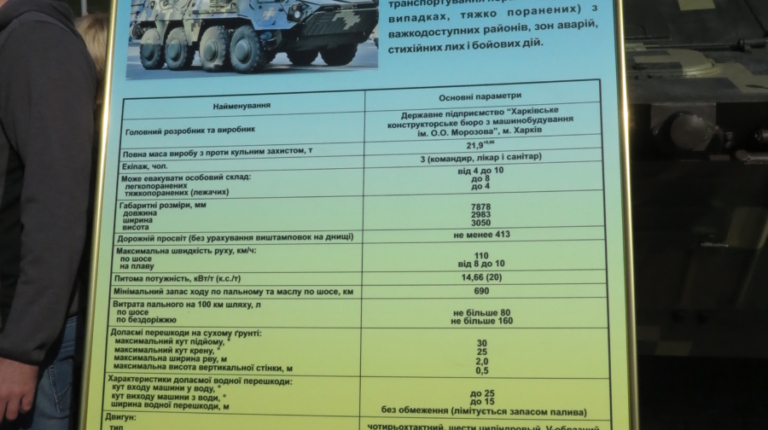 Посетители могут увидеть новейшие образцы колесных и гусеничных машин. Большинство из них – украинского производства. Помимо боевых машин (танки, БТР, ракетные комплексы) представлена также специальная – автотопливозаправщики и инженерные машины. Особого внимания заслуживают, аварийно-спасательные, санитарные и специализированные медицинский транспорт. Широко представлен транспорт и Государственной пограничной службы.
