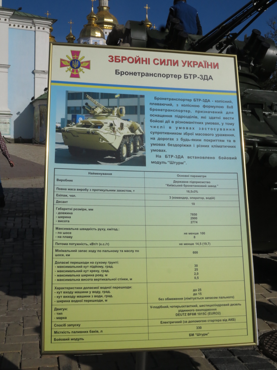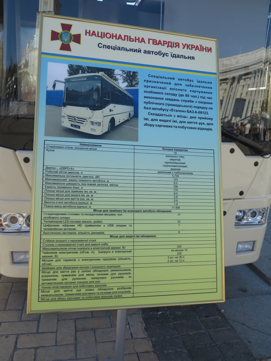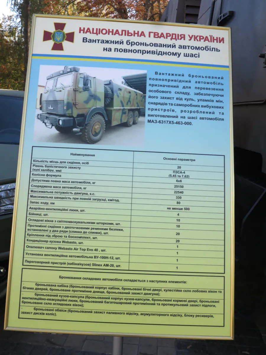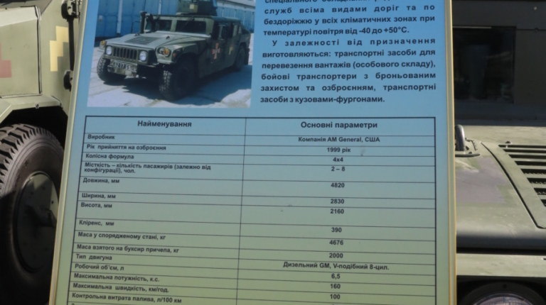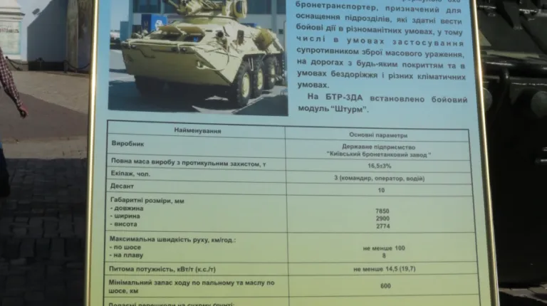 Посетители могут увидеть новейшие образцы колесных и гусеничных машин. Большинство из них – украинского производства. Помимо боевых машин (танки, БТР, ракетные комплексы) представлена также специальная – автотопливозаправщики и инженерные машины. Особого внимания заслуживают, аварийно-спасательные, санитарные и специализированные медицинский транспорт. Широко представлен транспорт и Государственной пограничной службы.