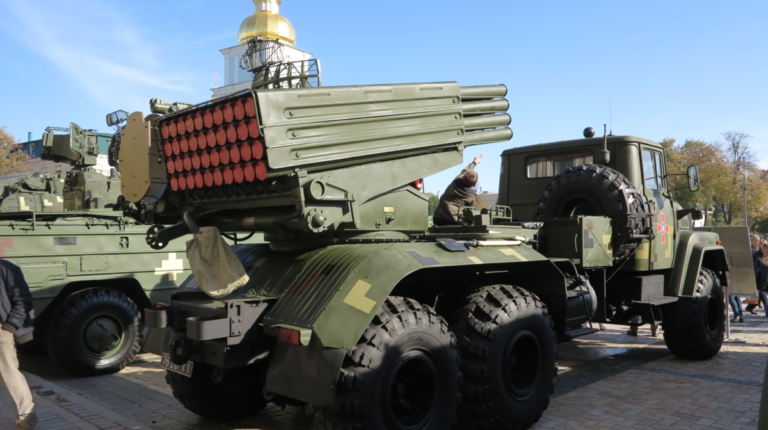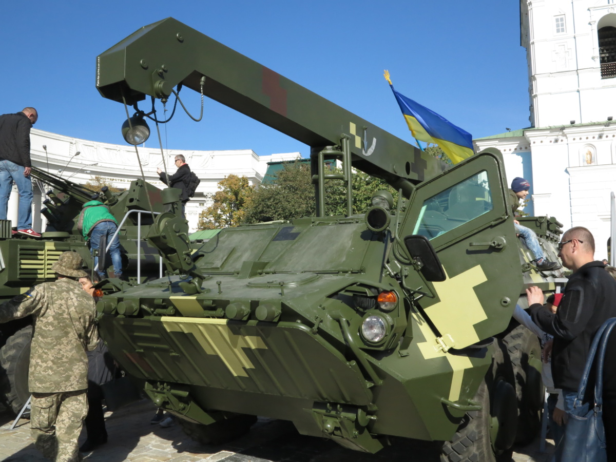 В День защитника Украины, который отмечается 14 октября вместе с Днем украинского казачества, на Михайловской площади в Киеве открылась выставка военной техники.