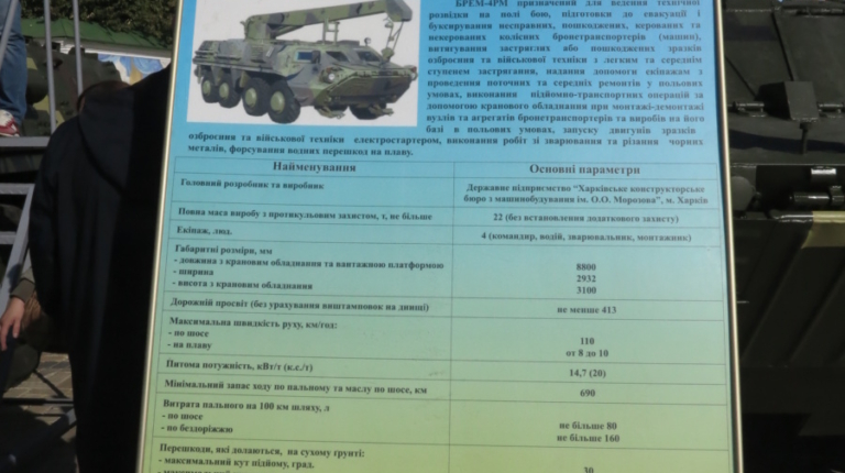 Из колесной бронетехники также стоит отметить бронированную ремонтно-эвакуационую машину БРЭМ-4РМ, выполненную на базе БТР-4. Машина оснашается крановой установкой и мощной лебедкой.