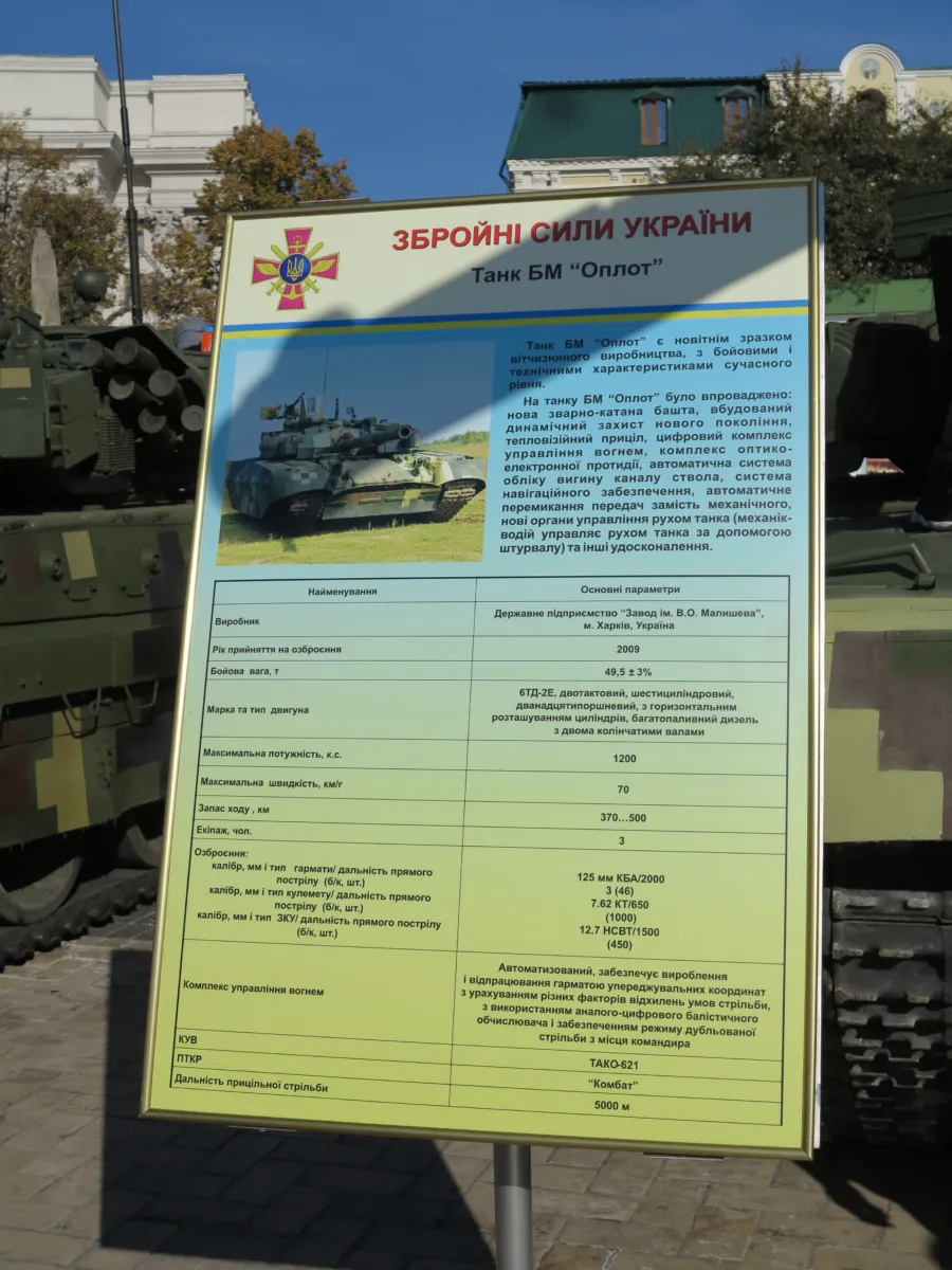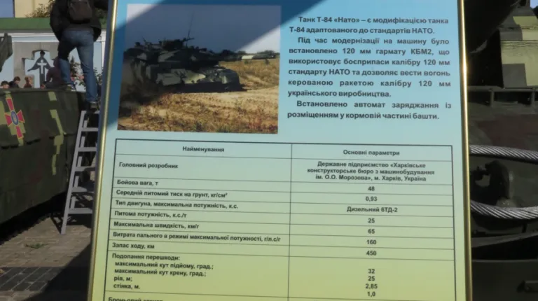 Среди танков нужно выделить Т-84 «НАТО», ранее известный как «Ятаган». Машина оснащается пушкой калибра 120 мм (стандарт НАТО) и автоматической системой заряжания в башне.