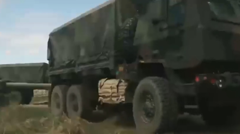 На кадрах також видно, що гаубиці буксирують американські тактичні вантажівки з бронекабінами — Oshkosh M1083A1P2 (6х6), про які ми вже детально розповідали. Гаубиці М777 випускаються з 2005 року і перебувають на озброєнні не тільки США, а й Австралії, Канади, Індії, Саудівської Аравії та ін.