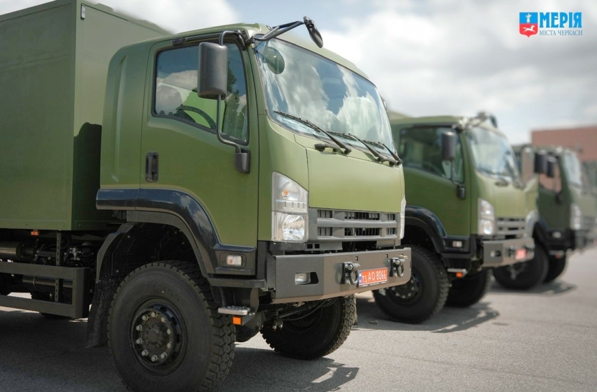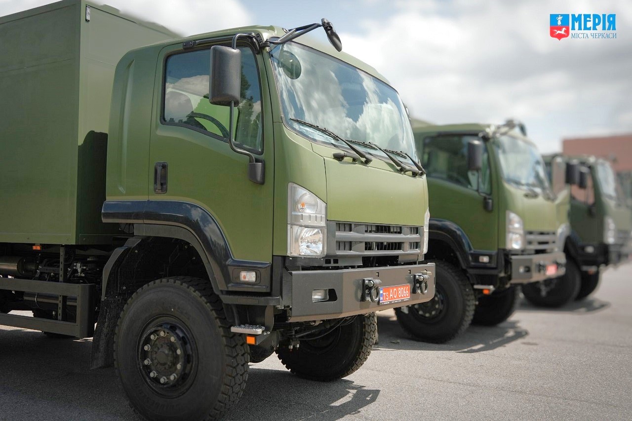 Черкаська територіальна громада власним коштом придбала для наших воїнів три повнопривідні вантажівки Isuzu FTS34 (4×4). Ключі від автомобілів військовим особисто вручив міський голова Черкас Анатолій Бондаренко. Вантажівки, оснащені кузовами-фургонами та гідробортами Dhollandia, будуть використовуватися в одній з військових частин для доставки боєприпасів, продуктів харчування та інших цілей.