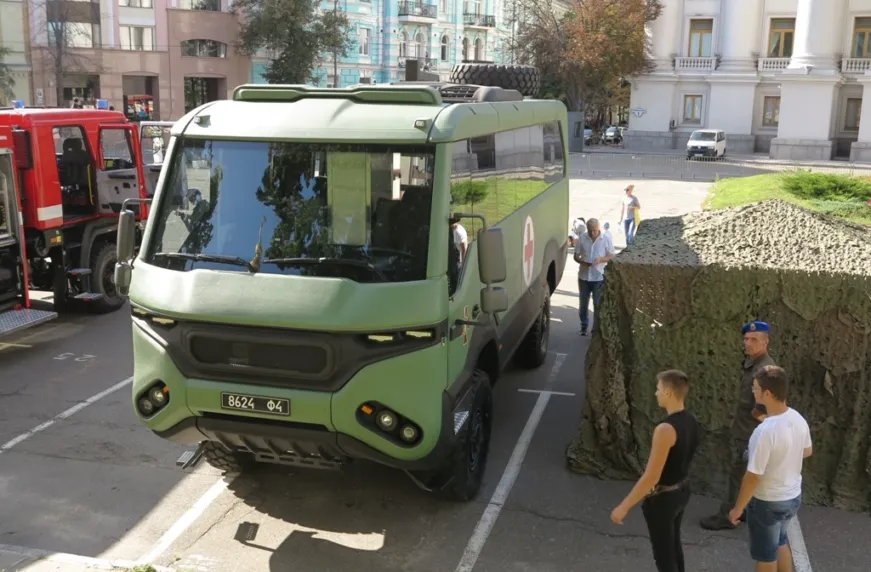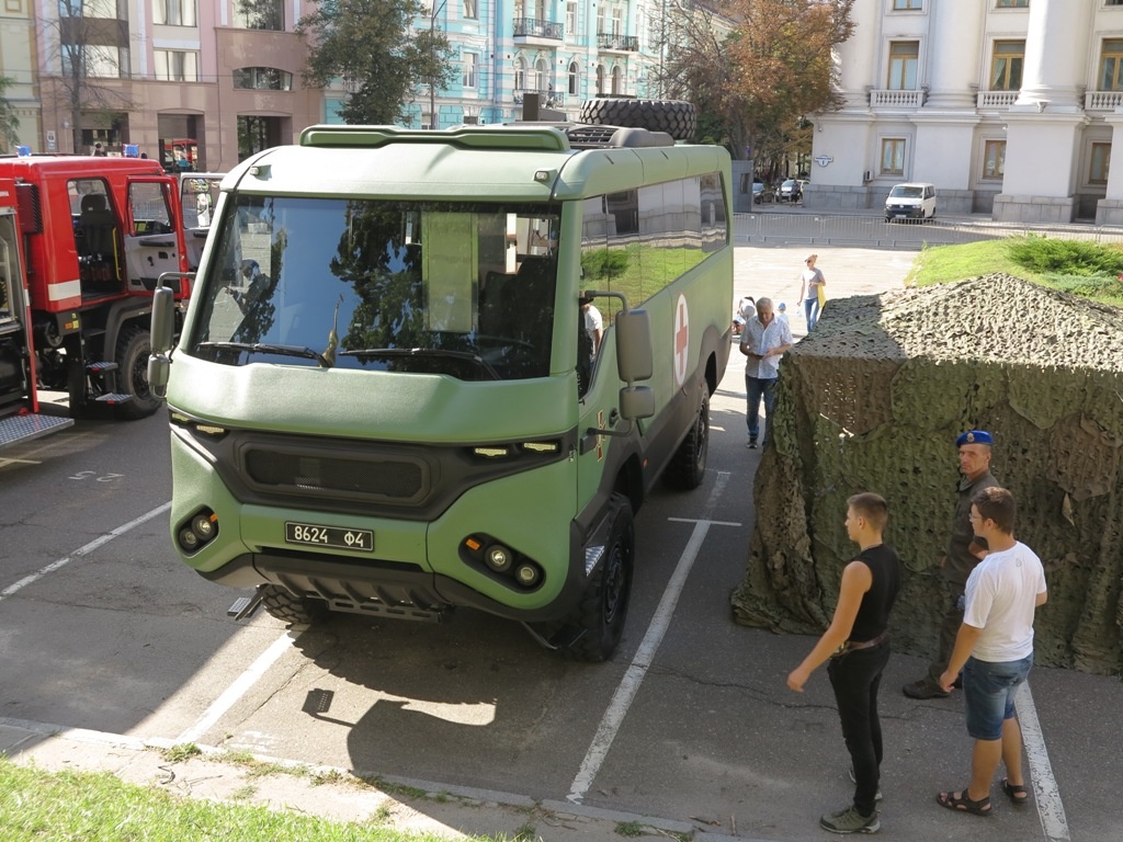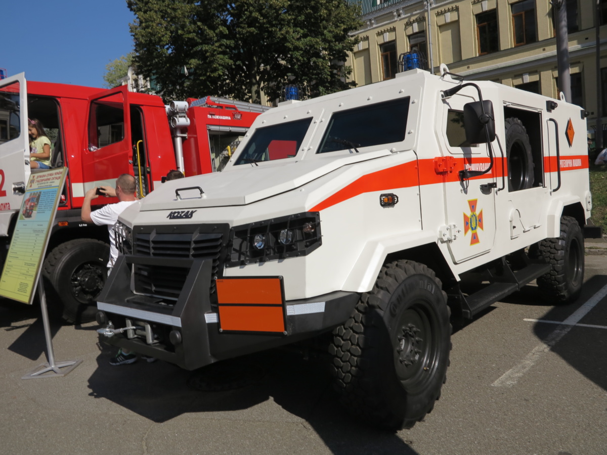 В Киеве, на Михайловской площади с 23 по 26 августа проходит выставка военной техники, приуроченная к 27-й годовщине Независимости Украины. Помимо чисто армейских бронеавтомобилей и боевой колесной и гусеничной техники здесь также широко представлены аварийно-спасательные автомобили внедорожники.