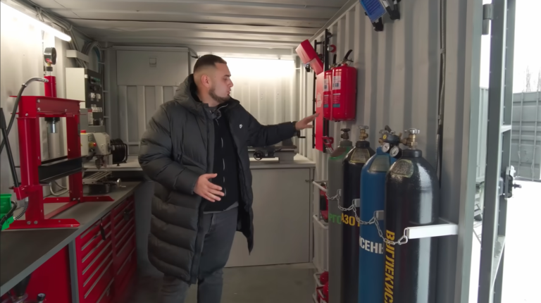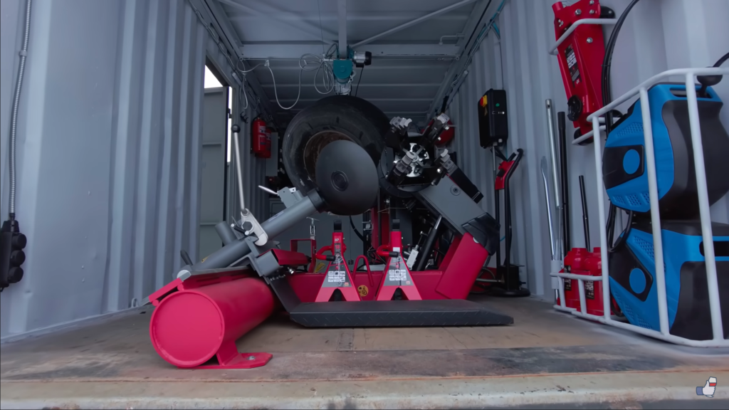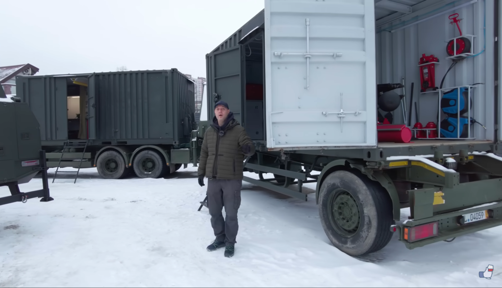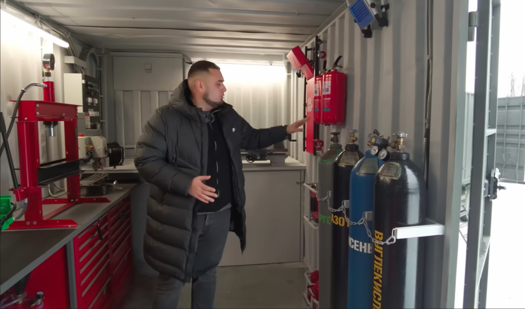 У стандартному контейнері розміщено широкий спектр різного обладнання. Це і балони (під аргон, азот, кисень та вуглекислоту), всілякі домкрати, токарний верстат, прес на 12 т, обладнання для зачищення та різання гідравлічних шлангів, роздачі мастила та консистентного змащування. В комплектацію входить широкий набір пневмоінструменту – гайковерти, для підкачування, пістолет для технічних рідин. Є пуско-зарядний пристрій, портативна мийка високого тиску, величезний вибір дюймових та гайкових ключів.