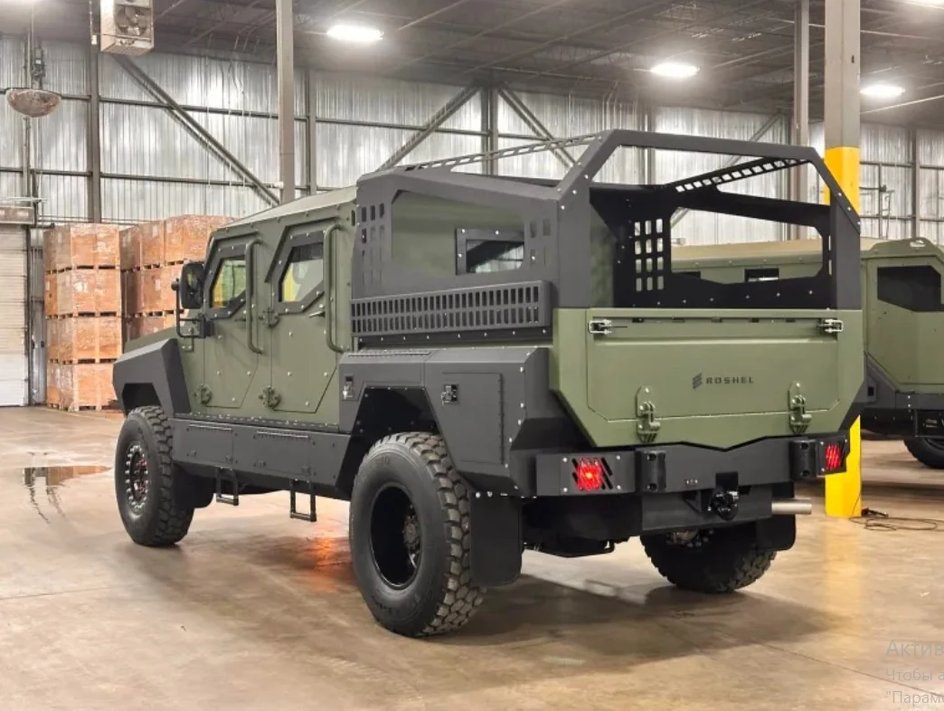 Канадська компанія Roshel днями представила свою нову розробку - пікап на базі відомого бронеавтомобіля Roshel MRAP. Машина доступна в чотирьох- або п'ятимісному варіанті. Тут застосували модернізовані мости, що дозволило збільшити вантажопідйомність до 3500 кг, повідомляє Defence Blog.