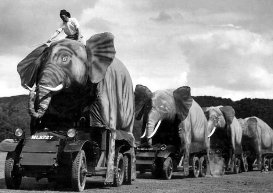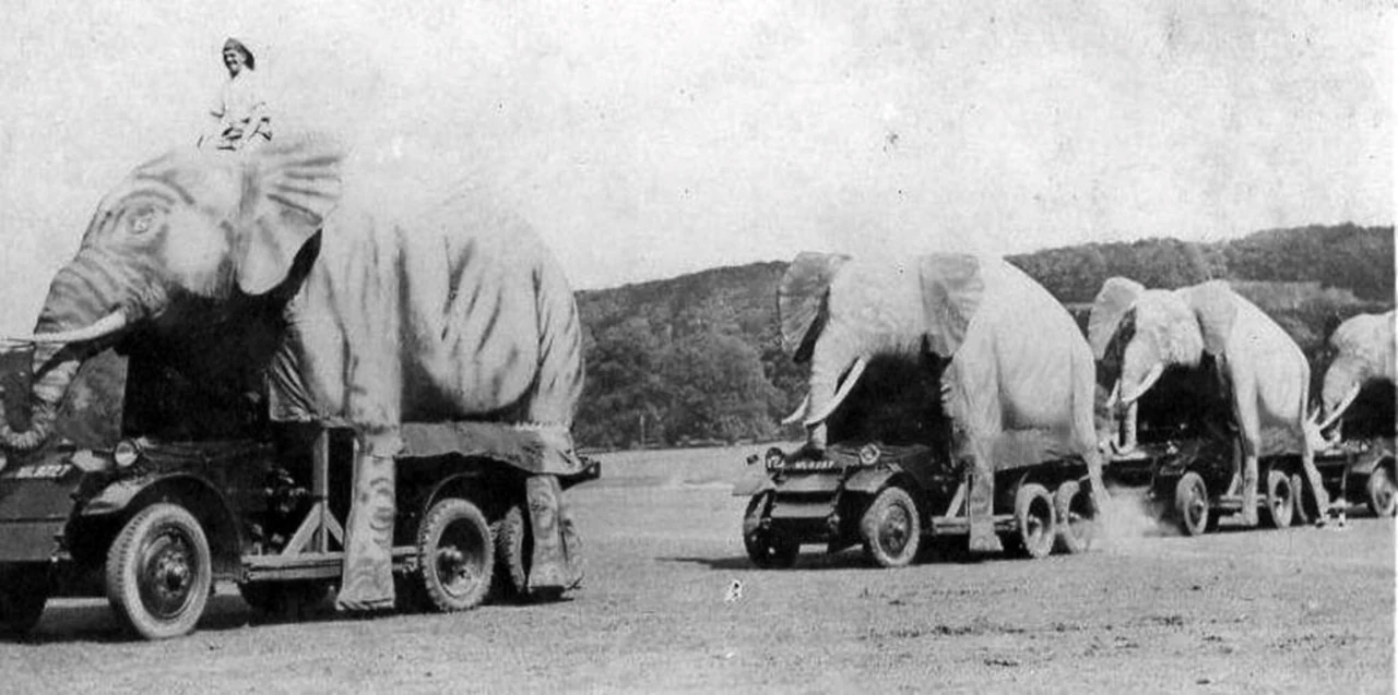 Щоб приховати бронеавтомобілі від повітряного спостереження противника, їх замаскували... під слонів. Які ж машини були заховані під цими «звірячими шкурами»?