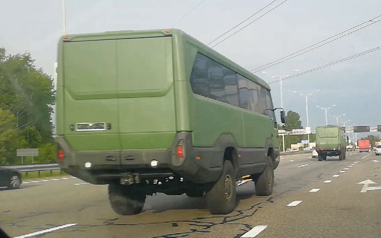 Остается загадкой фирма-изготовитель внедорожного буса. Суда по элементам ходовой, в частности форме заднего моста, можно предположить, что в основе автобуса лежит шасси среднетоннажника IVECO Cargo 4х4. Два автобуса были совершенно новые, без номеров и окрашены в защитный армейский цвет, – поэтому, возможно, предназначены для военных.