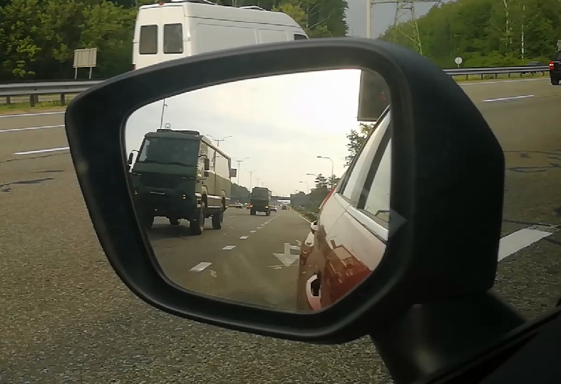 Сегодня на украинских дорогах можно встретить внедорожники самых разнообразных производителей. Попадаются среди них и настоящих гиганты – как этот автобус, сфотографированный на Бориспольской трассе под Киевом. Машина привлекает внимание зубастыми колесами и внушительным клиренсом. При этом у нее очень интересный дизайн кузова. Помимо основных фар в бампере машина оснащается еще и дополнительными (по всей видимости светодиодными) по бокам от решетки радиатора.