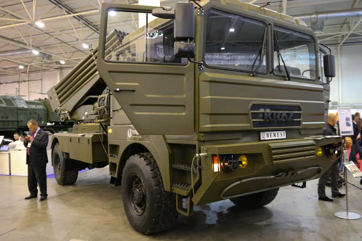 БМ-21 УМ «Берест» - реактивная система залпового огня калибра 122 мм – разработана и построена на Шепетовском ремонтном заводе, входящем в «Укроборонпром». В качестве базового был выбран КрАЗ перспективного поколения с компоновкой «кабина над двигателем» - модель 5401НЕ (4х4). Новый боевой спецавтомобиль дебютировал на выставке «Оружие и безопасность 2018», которая проходила в Киеве с 9 по 12 октября, и привлек к себе очень большое внимание посетителей.