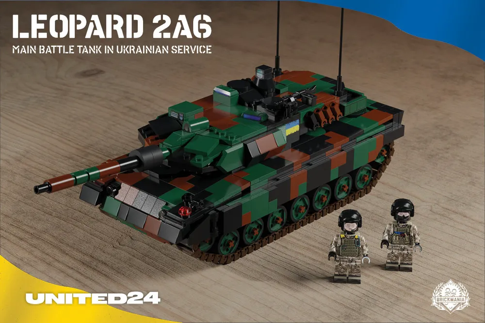 Цікаво, що крім РСЗВ M142 HIMARS, яка вже добре себе показала на полі-бою проти російських окупантів, компанія Brickmania виготовила ще одну бойову машину, так би мовити анонсом. Йдеться про танк Leopard 2A6, партію яких найближчим часом обіцяють передати для ЗСУ західні партнери. Є також в “арсеналі” у Brickmania і трофейна російська техніка – танк Т-82BVM “Bunny” з протимінним тралом спереду, який був конфіскований у окупантів у перші дні повномасштабної війни.