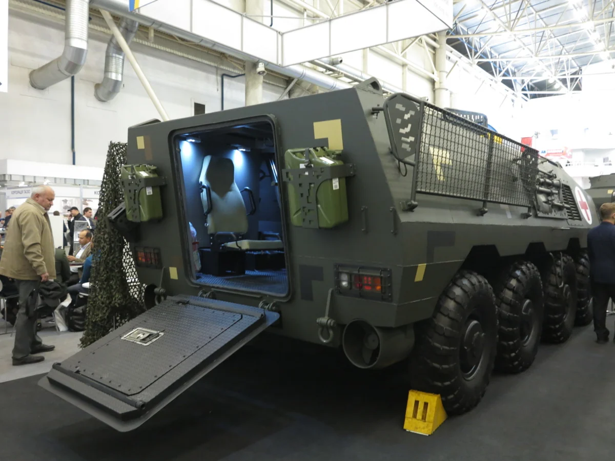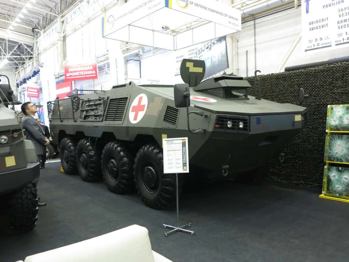 Столичное НПО «Практика» привезла на международную выставку «Оружие и безопасность 2018» в Киеве санитарный бронетранспортер 8х8. Машина создана на базе БТР-60, получила новый бронекорпус, переднемоторную компоновку, с полной заменой силовой линии (двигателя и трансмиссии).