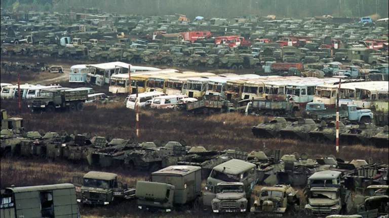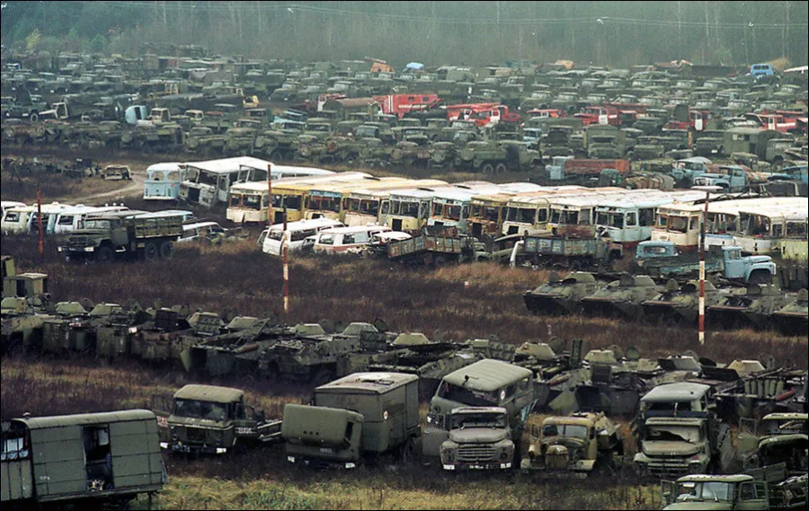 Оскільки радіаційне випромінювання від транспортних засобів було величезним і в десятки разів перевищувала норму, то їх було вирішено залишити в Зоні відчуження. Найнебезпечніші з них поховали у спеціальних могильниках.