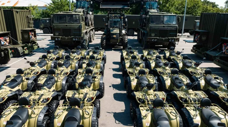 Також у партію увійшли два тягачі Foden 8х6 з системою Мультиліфт, що дозволяє швидко завантажити та розвантажити техніку масою до 18 т. Також відзначимо три нові екскаватори-навантажувачі TDC BL105. Це машини вітчизняного виробництва – Фонд Порошенка законтрактував їхній випуск до кінця року. Тепер по 6 таких красенів щомісяця поповнюватимуть інженерні частини та допомагатимуть зводити фортифікаційні споруди. І нарешті це 27 квадроциклів – високомобільний транспорт, що дуже затребуваний для успішного виконання бойових завдань.