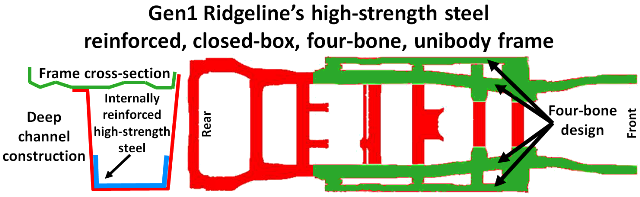 Машина была построена на базе SUV Honda Pilot. Пикап оснащался только двухрядной 5-местной кабиной и только одним двигателем – 3,5-литровым V6 в 247 л.с. Коробка передач – 5-ступенчатый автомат. Машина комплектовалась системой полного привода Variable Torque Management Four-Wheel Drive (VTM-4).