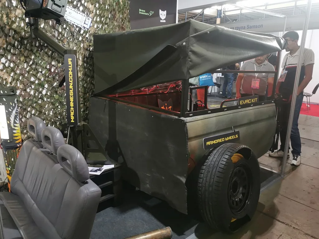 Заслуговує на увагу і стенд компанії Сamper Kit, яка займається переобладнанням автомобілів із цивільних в машини для військових цілей. Це і прилади нічного бачення, і комплекти бронювання та турелі для великокаліберних кулеметів. На виставці було представлено також кіт-набір для евакуації поранених. Він розбірний і може бути доставлений навіть поштою. Комплект легко встановлюватися на пікапи або більш важкі вантажівки, причому зробити це можна безпосередньо на передовій.
