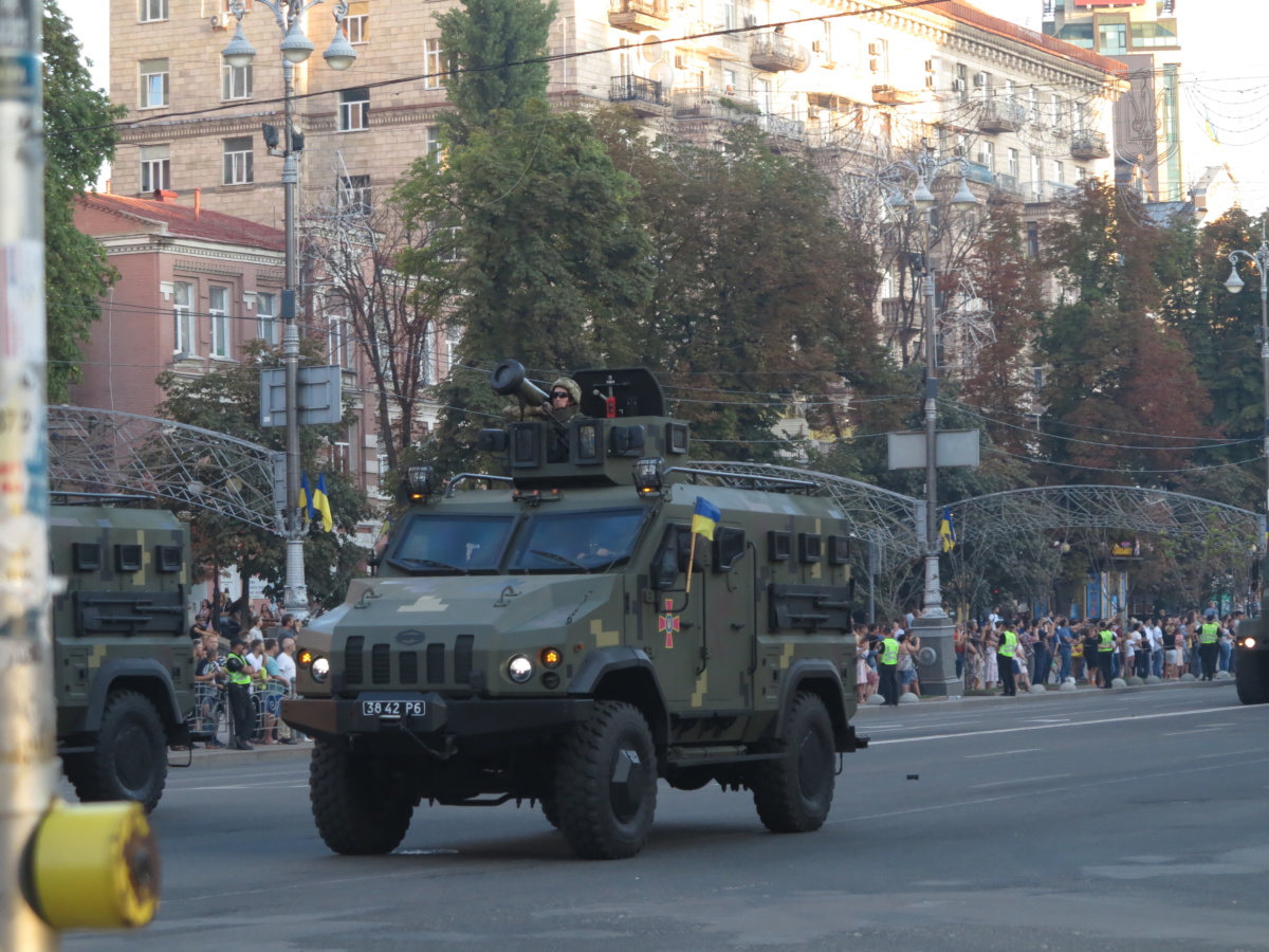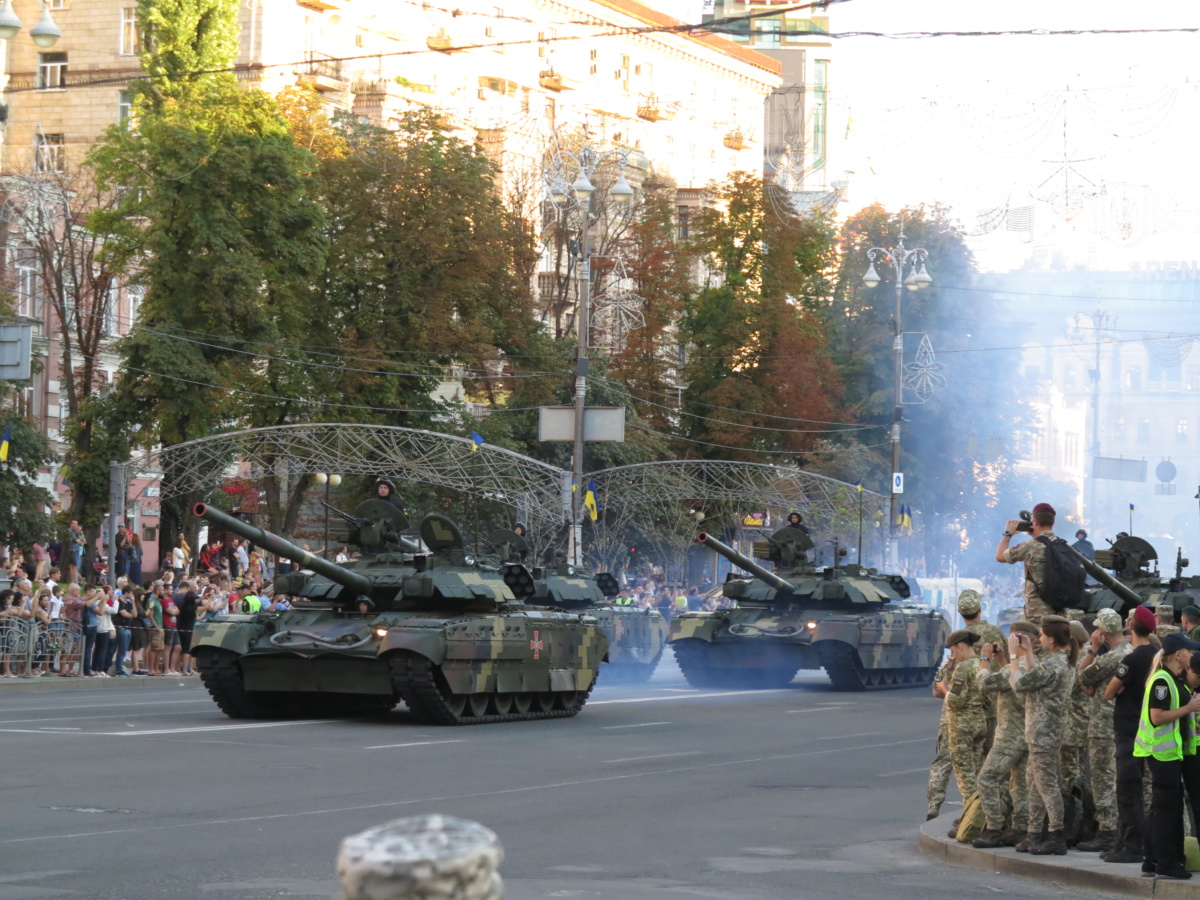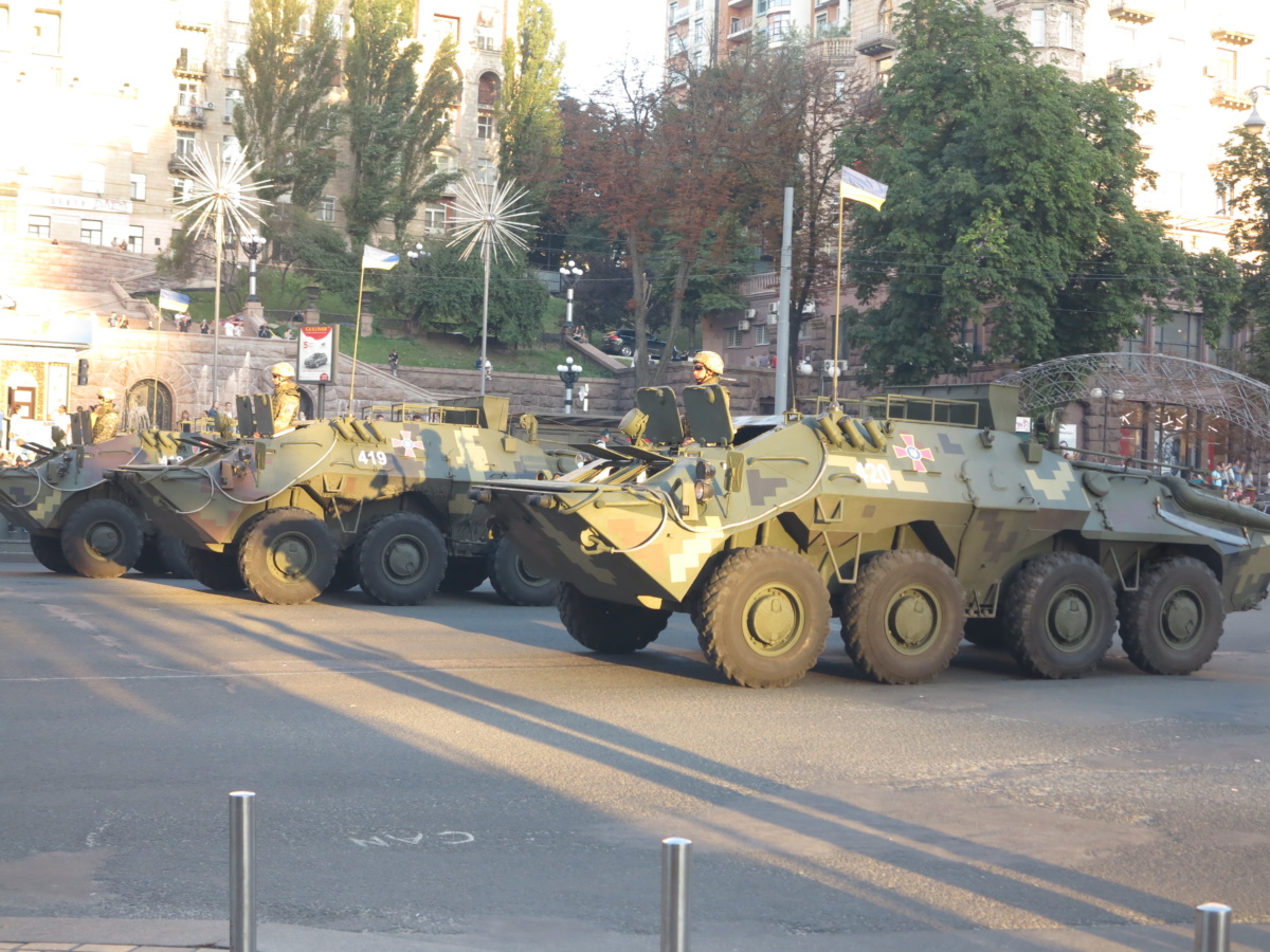 Присутствующий на двух предыдущих репетициях на Крещатике украинский танк Т-84-120 «Ятаган» с пушкой 120 мм стандарта НАТО на этот раз отсутствовал. Все дело в небольшой поломке, которая случилась по дороге. Надеемся, что к параду 24 августа боевую машину доведут до идеального состояния.