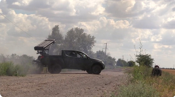 Яскравим тому прикладом є модернізований Mitsubishi L200, на борт якого встановили пускову установку некерованих ракет з-8 калібром 80 мм. Її зняли зі збитого російського вертольота Ка-52. Судячи з відео, яке опублікували на офіційній сторінці Міністерства оборони в Twitter, саморобна РСЗВ вже працює по позиціях окупантів.