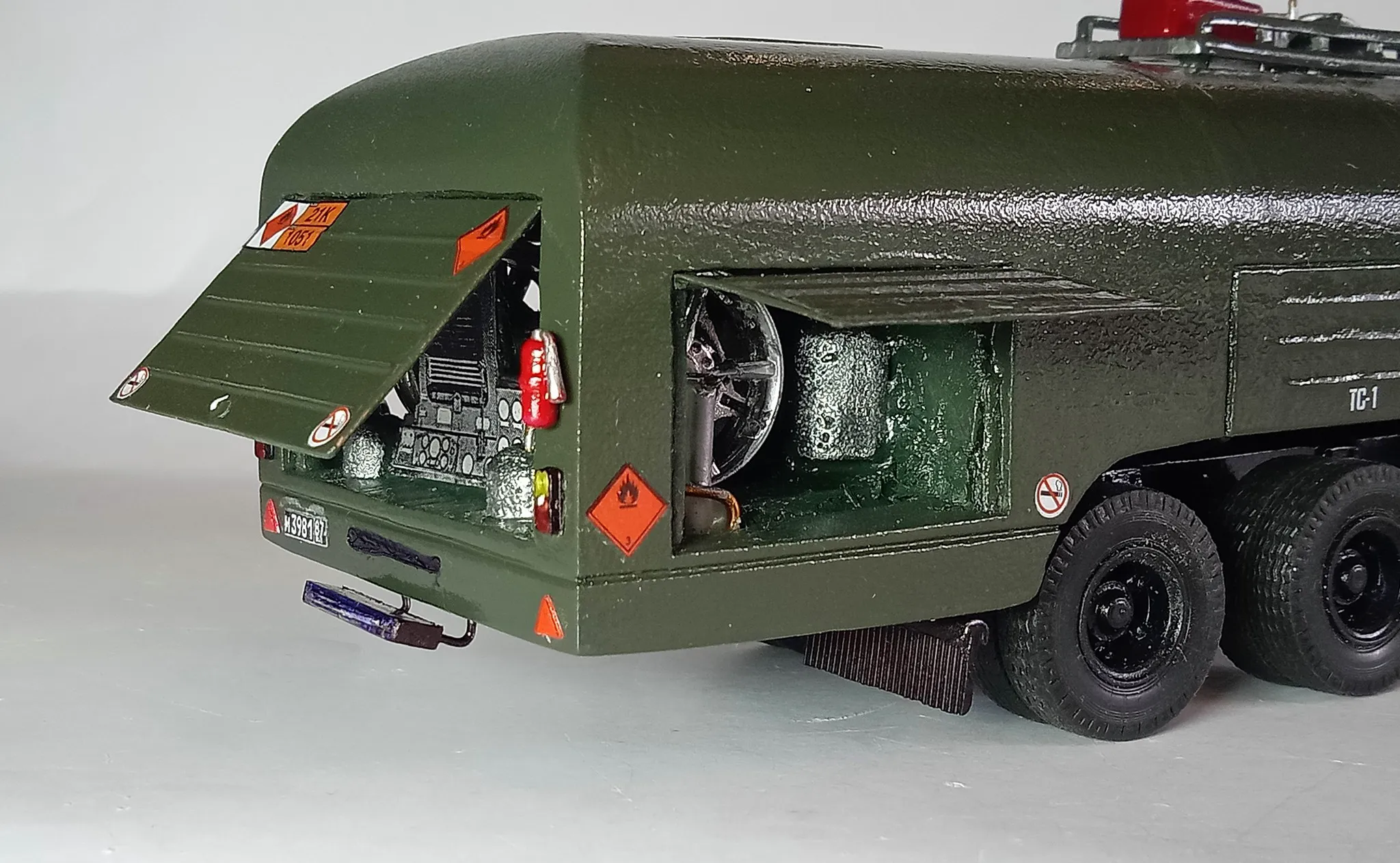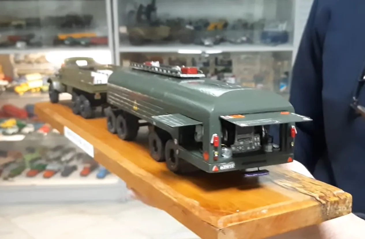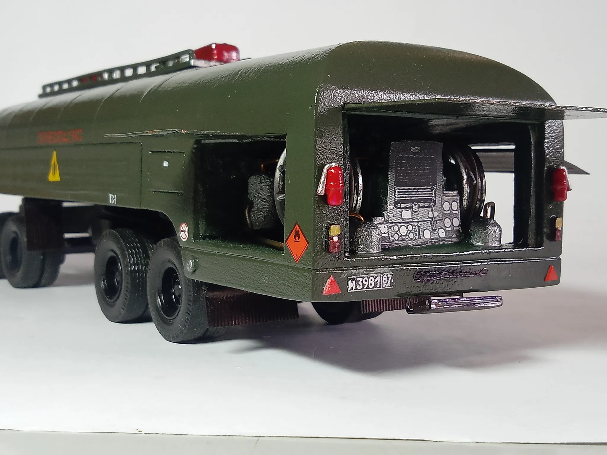 За основу було взято унікальну модель ТЗ-22 у масштабі 1:43, виготовлену відомим майстром Олександром Балицьким із м. Шепетівка. Напівпричіп виконаний з дерева та відмінно деталізований. У кормі за відкидними кришками показано основне спеціалізоване обладнання: автономний двигун ГАЗ-51 та насосна установка ЦСП-57. Заслуговує на увагу і двовісний підкатний візок. А в якості тягача використали КрАЗ-214 (6х6), попередника так званого «лаптежника».