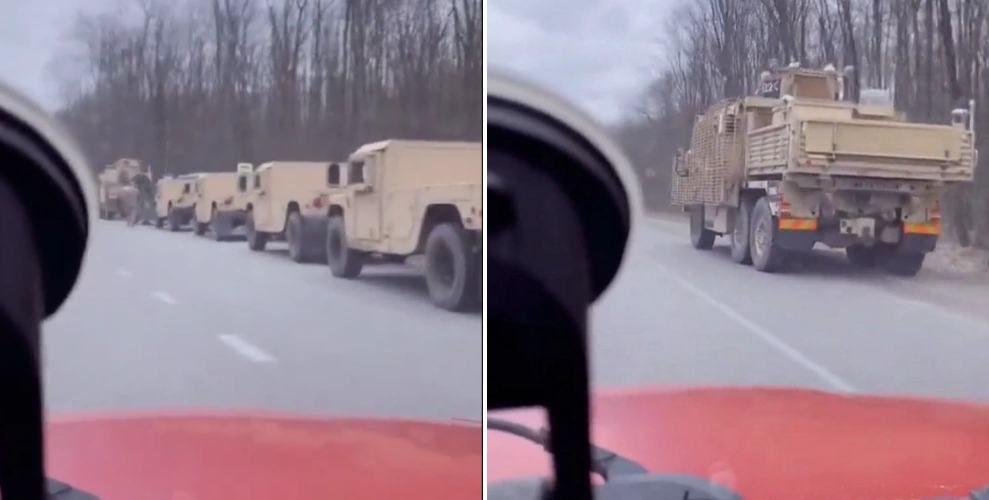 Ролик опублікували у Telegram-каналі NMFTE. Судячи з нього, більше 40 різних бронемашин вишикувалися вздовж дороги. Тут можна помітити американські Oshkosh M-ATV та HMMWV M1152A1, а також британські Husky TSV та Wolfhound. Супроводжує їх український УАЗ-469.