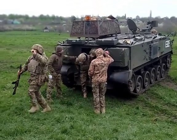 У розпорядженні видання «Військовий кур’єр» з’явилися фото, на яких показано, як українські бійці відпрацьовують висадку-посадку десанту на полі бою. БТР FV432 має компактні розміри, але в ньому вільно може розміститися десять людей десанту та дві людини екіпажу.