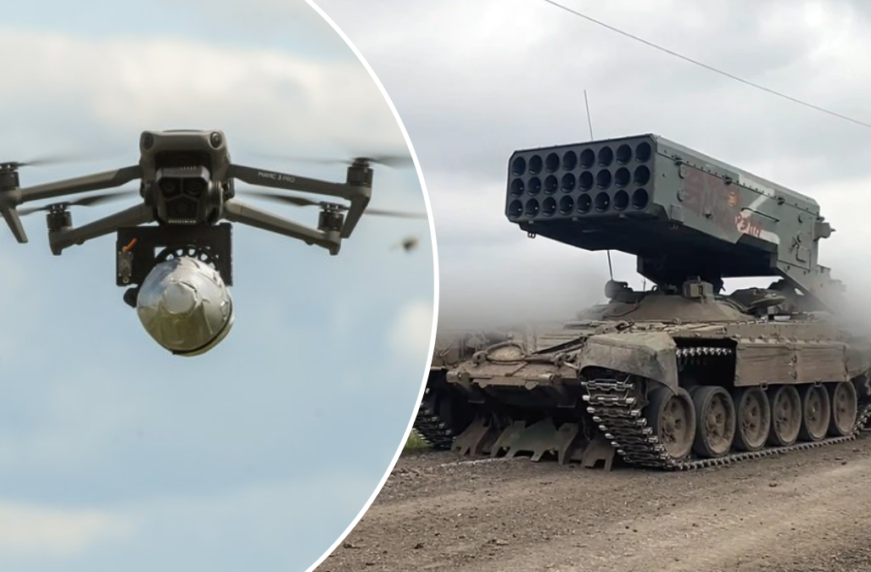 Українські воїни продовжують чинити опір російським окупантам, виводячи з ладу їхню важку техніку та знищуючи особовий склад. Цього разу безпілотники Збройних сил України влаштували полювання на ворожий ТОС-1А «Сонцепек».
