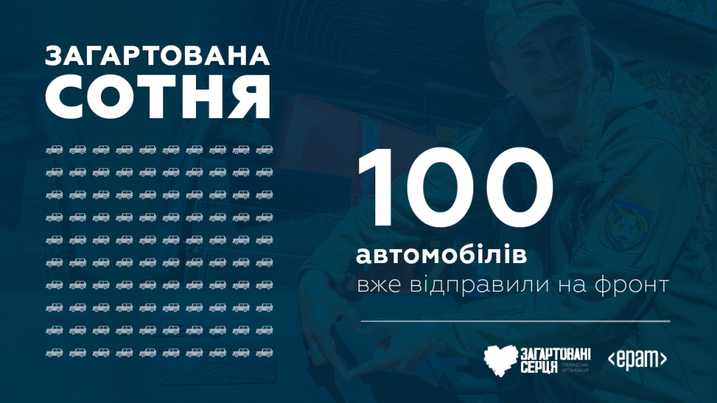 IT-компанія EPAM Україна та ГО «Загартовані серця» завершили проєкт з передачі 100 евакуаційних автомобілів захисникам. Це партнерство суттєво допомогло підтримати різні підрозділи Сил оборони на передовій. Проєкт “Загартована сотня” стартував у червні 2022 року, а остання машина з цієї сотні вирушила на фронт у квітні 2024 року. EPAM виділила на придбання та ремонт машин понад 30 млн гривень. Близько 1,5 млн гривень зібрали в рамках фандрейзингу, серед яких 300 тисяч – від спеціалістів компанії. Окремим етапом збору стала інформаційна підтримка проєкту від українських блогерів: Alyona Alyona, Нікіта Добринін, Назар Грабар, Павло Вишебаба, Олександр Мазуренко, Пан Роман, «фрілансер по життю» Євген Андріканич та Олександр Ляшук з котом Шайбіком.