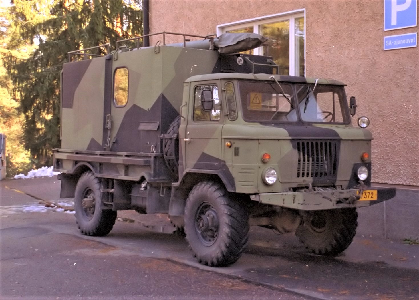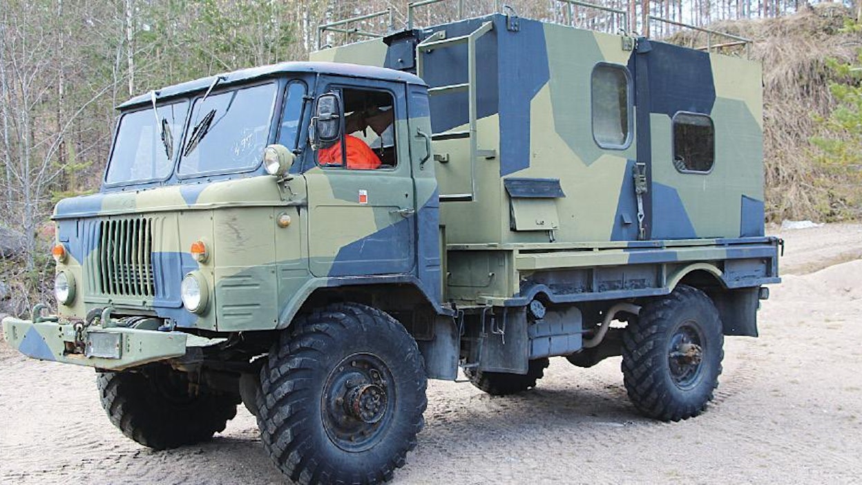 В даному випадку заслуговує на увагу не базове шасі – це звичайний ГАЗ-66, який свого часу поставлявся до фінської армії (біля 400 од. у 1972 – 1989 рр.), а встановлений на ньому фургон. Кузов цей модульного типу, складається з двох частин і кріпиться за допомогою стяжних ременів з храповим механізмом. На фото вони добре проглядаються на бічних стінках «кунга».
