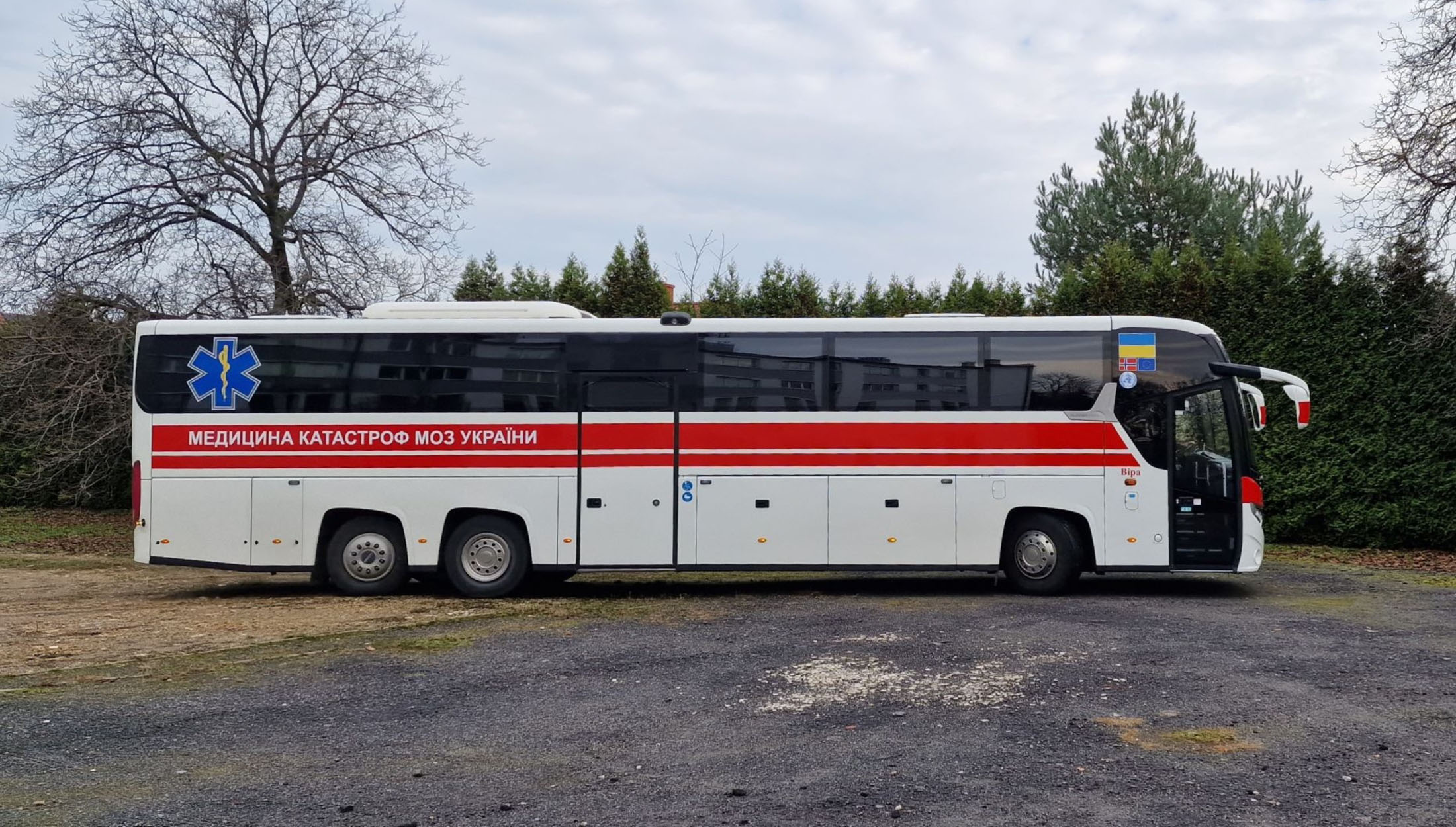 Організував доставку Євроатлантичний координаційний центр реагування на стихійні лиха НАТО. Сумарна вартість автобусів становить 2,9 млн. євро. Ці кошти було виділено із бюджету Норвегії. Повідомляється, що автобуси обладнані п’ятьма носилками, а також різноманітною апаратурою для моніторингу та контролю життєдіяльності поранених.