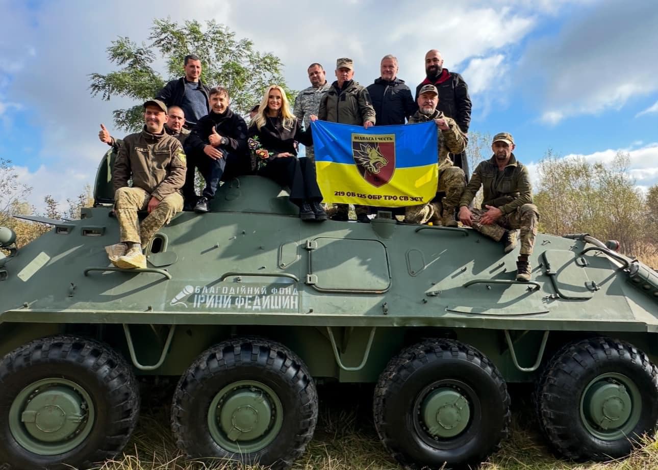 Благодійний фонд Ірини Федишин днями передав для 125 окремої бригади Тероборони бронетранспортер. Цей БТР-60 став першою технікою такого класу, придбаною Фондом для потреб ЗСУ. Кошти на його покупку вдалося зібрати на благодійному вечорі у Марбельї (Іспанія). Організація доставки БТР із Чехії, а також його ремонт та встановлення нових коліс зайняла не один місяць.