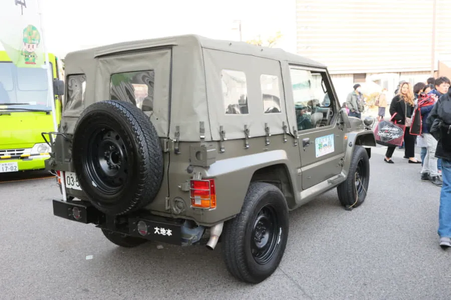 Що ж до позашляховиків, то на церемонії можна було побачити два армійські автомобілі Mitsubishi Type 73 (Shin), які випускаються з 1996 року. Компактна модель (завдовжки 4140 мм та спорядженою масою 1940 кг) має вантажопідйомність 440 кг і оснащується 2,8-літровим дизельним двигуном потужністю 116 к. с.