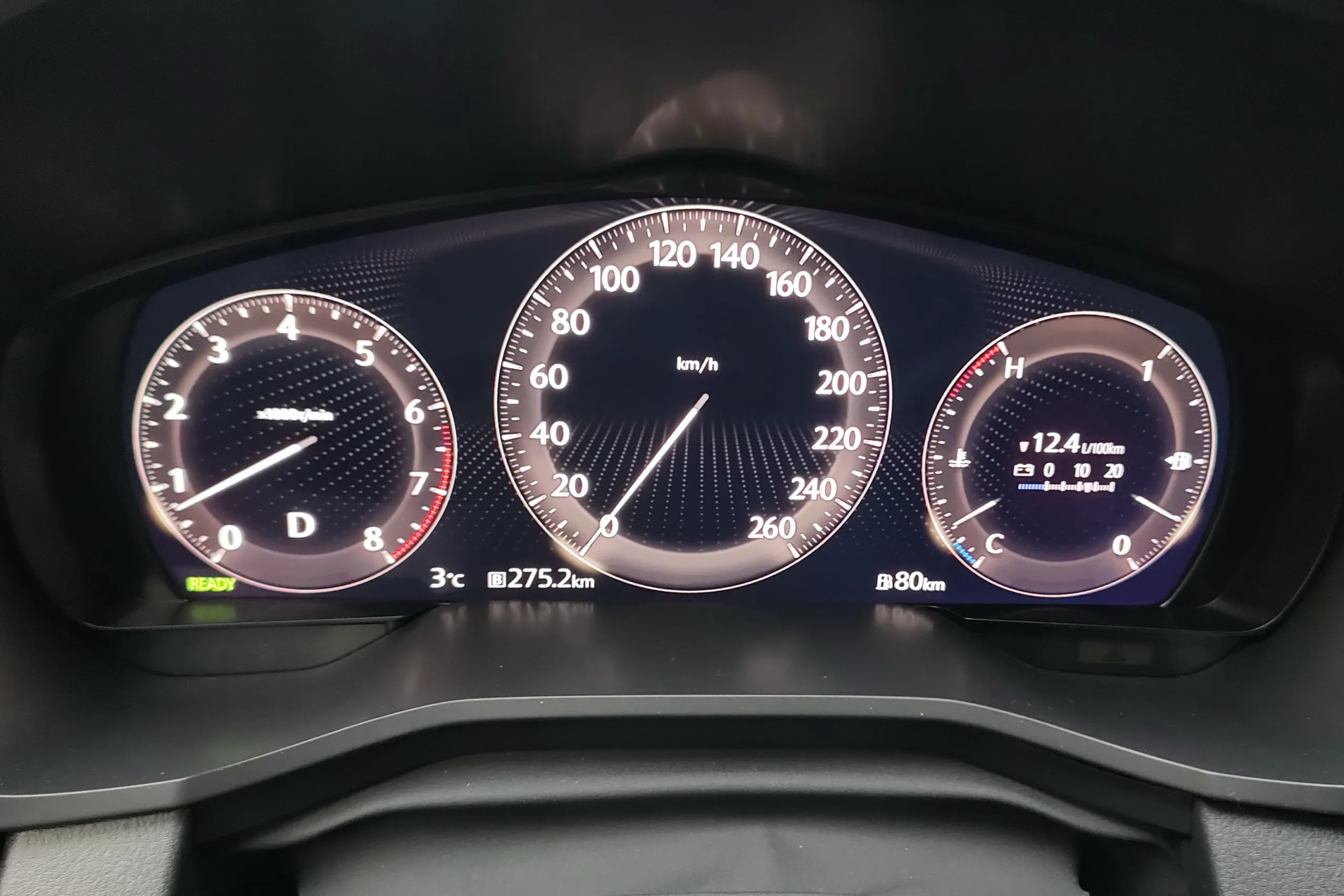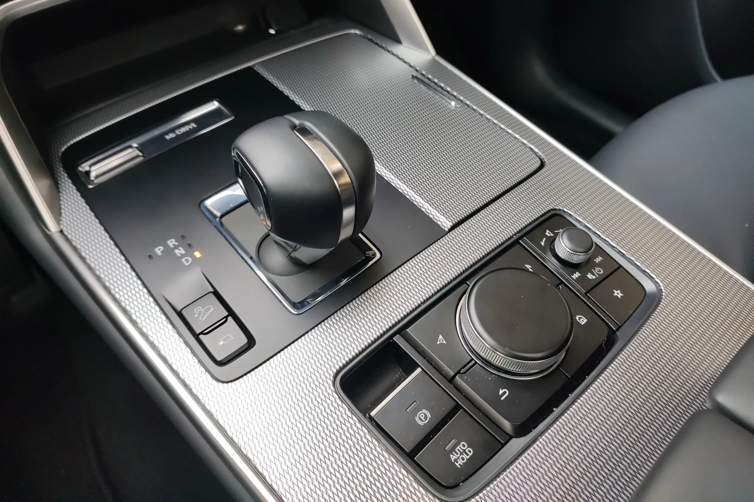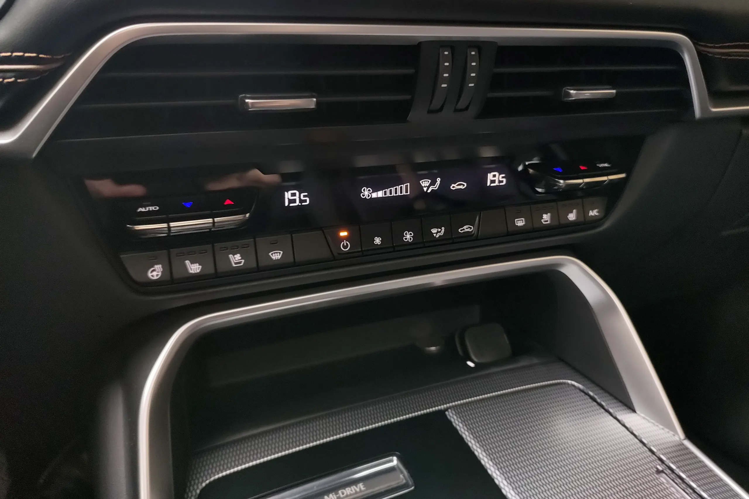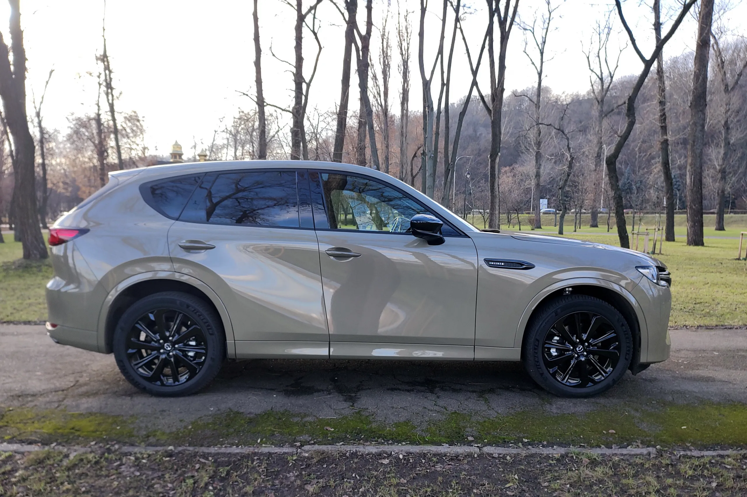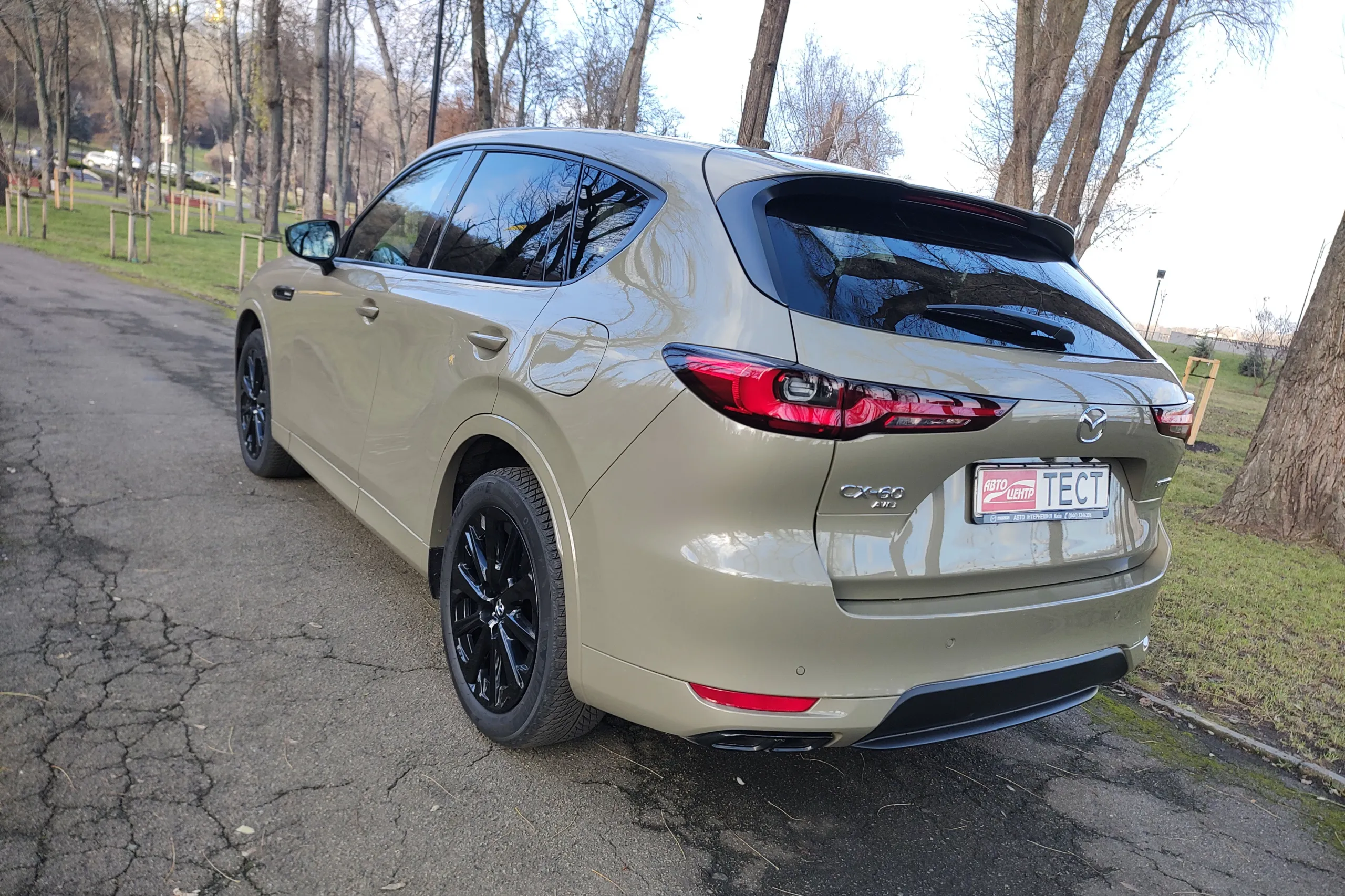 В основі кроссовера нова масштабована платформа призначена для продольного розташування двигуна. На ній збудовані як CX-60, так і CX-90. Під капотом — рядна турбована «щістка» об’ємом 3,3 літри, потужністю 284 кінські сили та крутним моментом 450 Нм. Вона оснащена системою м’якого гібрида MH-EV із використанням 48-вольтового стартер-генератора M-Hybrid Boost, системою рекуперативного гармування та невеличкою літій-іонною батареєю. За моїми відчуттями, у педалі акселератора ніби є два глобальних режими. Перший – це неквапливий. Тобто ви тримаєте оберти десь між холостими і двома тисячами, десь так, не більше. Цього цілком достатньо, щоб спокійно їхати в межах міського трафіку.