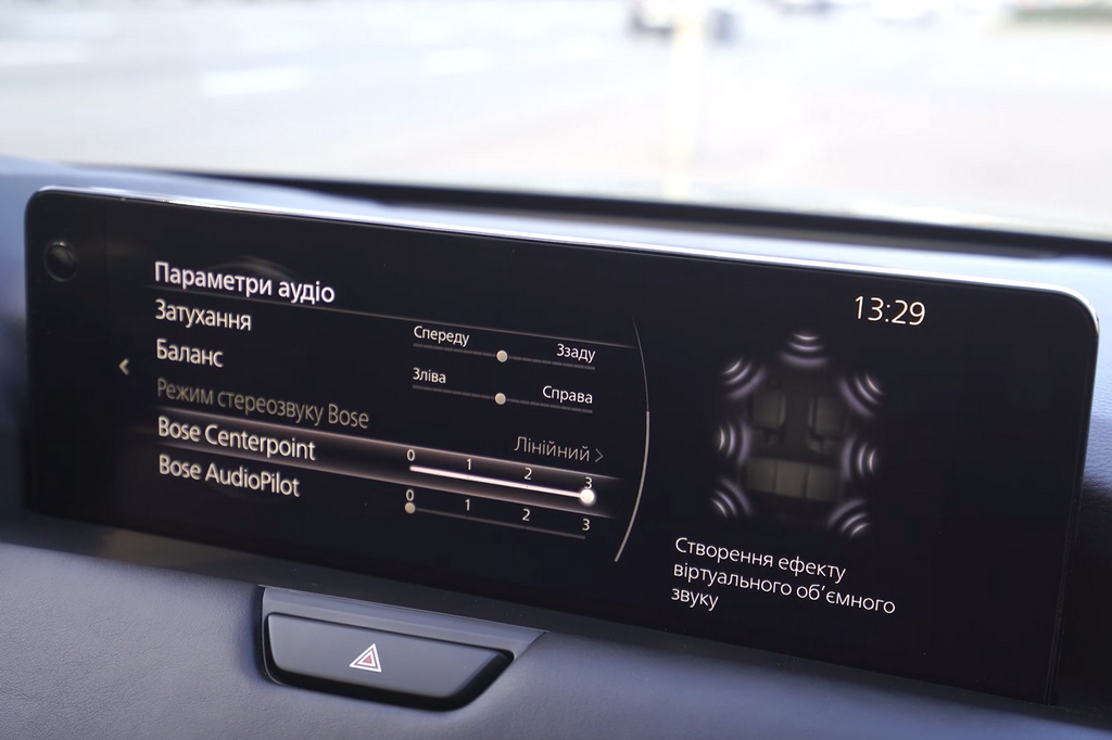 Преміальна аудіосистему звучить дуже чудово. Це Bose з 12 динаміками, з цифровою обробкою сигналу Surround Stage і низкою фірмових технологій. Наприклад, об’ємним звуком Bose Centerpoint II Surround та технологією компенсації. Якості звучання насичена, з глибокими басами та ефектом об’єма.