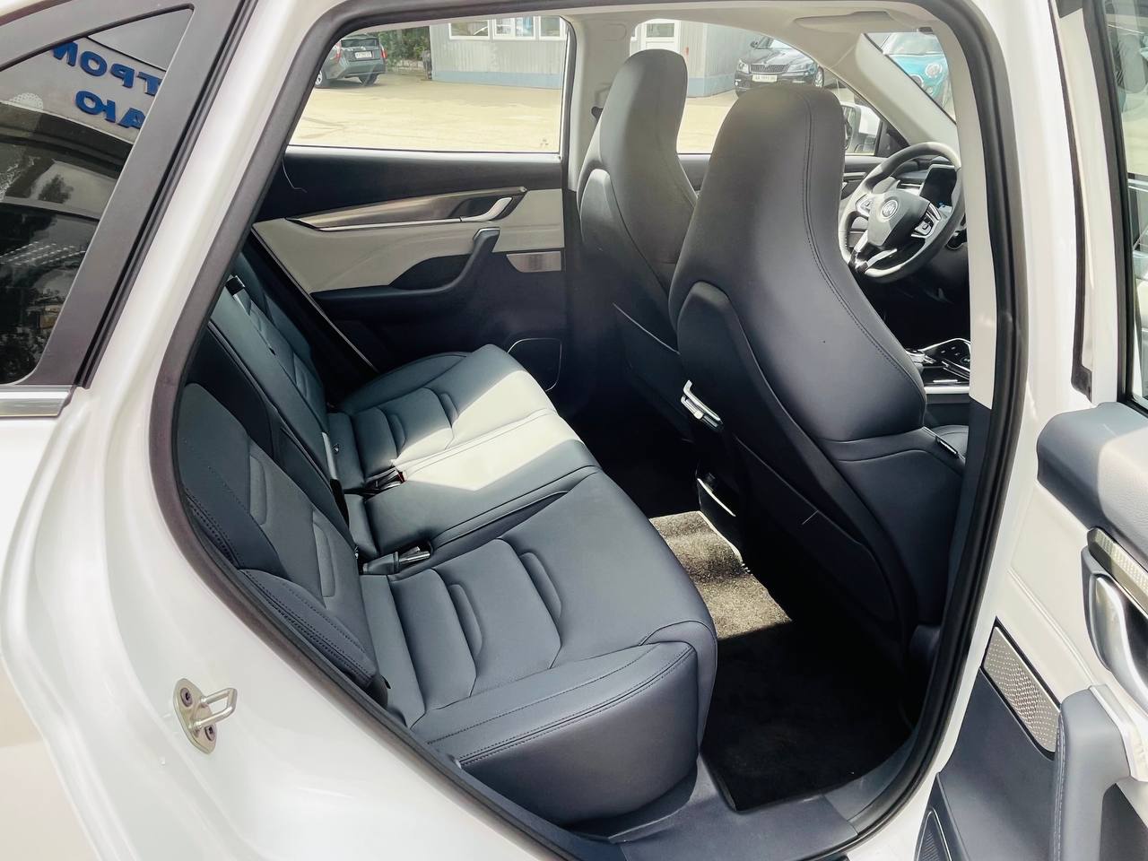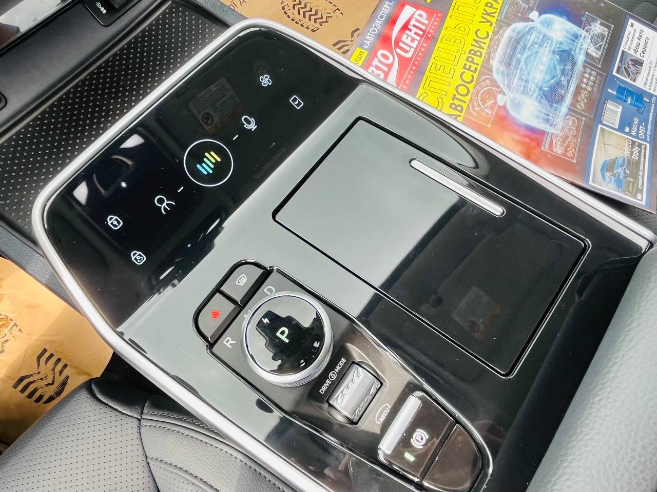 Перед шайбою коробки передач розміщена невелика сенсорна панель для виклику гарячих функцій — від двозонного клімат-контролю до голосового помічника. WM EX5 — це фактично девайс на колесах. Для підзарядки гаджетів у салоні маса роз’ємів USB та Type C. На передньому ряду їх 4, а на задньому — ще 3.