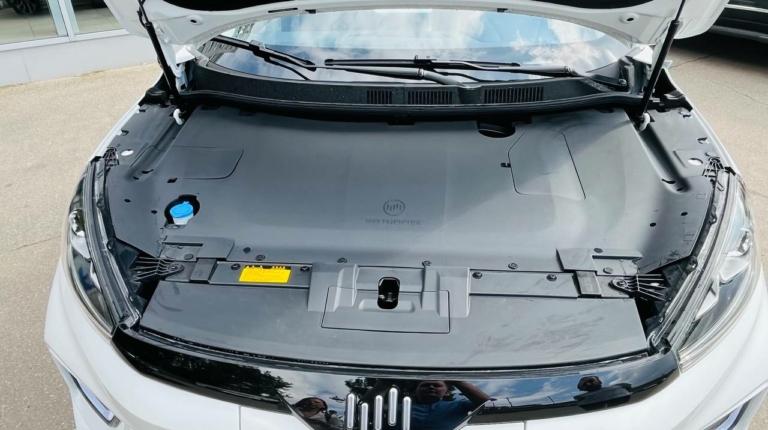 Акумуляторна батарея розташована під підлогою. Це звичайна річ для електромобілів. Такий конструкторський хід дає змогу сильно занизити центр ваги і тим самим покращити стійкість авто на дорозі. Але часто це стає причиною того, що навіть у кросоверів скромний кліренс. Та з EX5 у цьому сенсі все гаразд. Його дорожній просвіт становить цілком практичні 17,4 см. Так, не для бездоріжжя, але в місті та на природі – вистачить.