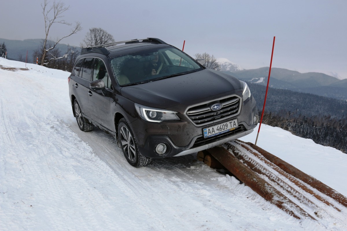 Несмотря на то, что машина отнюдь не выглядит как «джип», на бездорожье она может дать фору многим SUV`ам. Именно поэтому место это машины в нашем тесте «SUV and SNOW: суворий тест» вполне заслуженно. Отличные характеристики обеспечиваются легендарной системой постоянного полного привода Subaru и весьма приличным дорожным просветом.