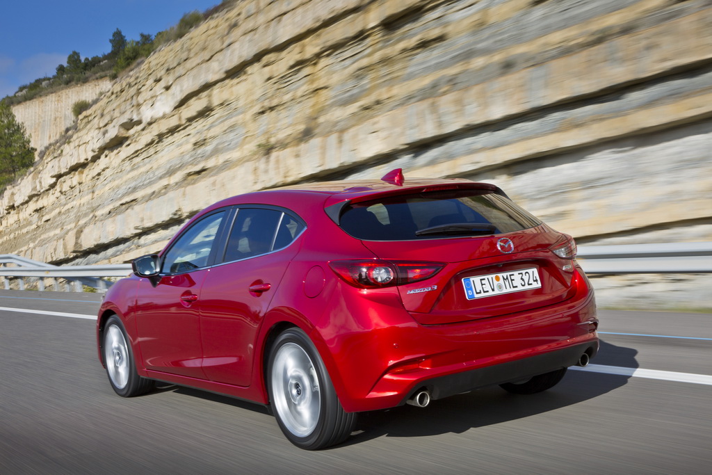 Список опцій поповнили 18-дюймові легкосплавні диски з новим малюнком, а до колірної палітри додали три абсолютно нових забарвлення – синій Eternal Blue Mica, сріблястий Sonic Silver і темно-сірий Machine Grey Premium Metallic. Тепер для Mazda3 2017 модельного року доступні 9 кольорів кузова. Варто також зазначити, що під час фарбування автомобіля в колір Machine Grey Premium Metallic використовується унікальна технологія Mazda, яка отримала назву Takuminuri. Вона передбачає наявність відбивального шару з частинками алюмінію завтовшки лише 2,5 мікрона.