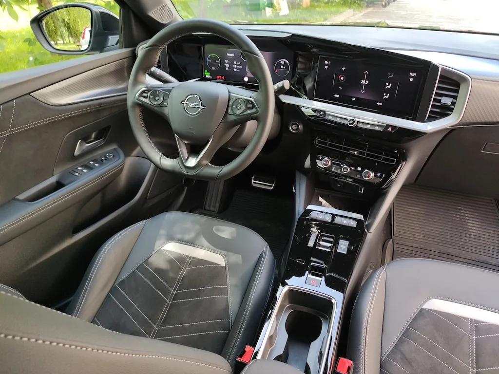 Сидіння, оздоблені замшею та екошкірою мають широку подушку і дещо завужену спинку, але в цілому дуже зручні, і з гарною бічною підтримкою. Втім, розрахованою на не дуже великих водія та пасажирів. До речі саме таке оздоблення салону відрізняє комплектацію електричної Мокка, у бензинової версії воно інше, там пропонується комбінація тканини та шкіри.