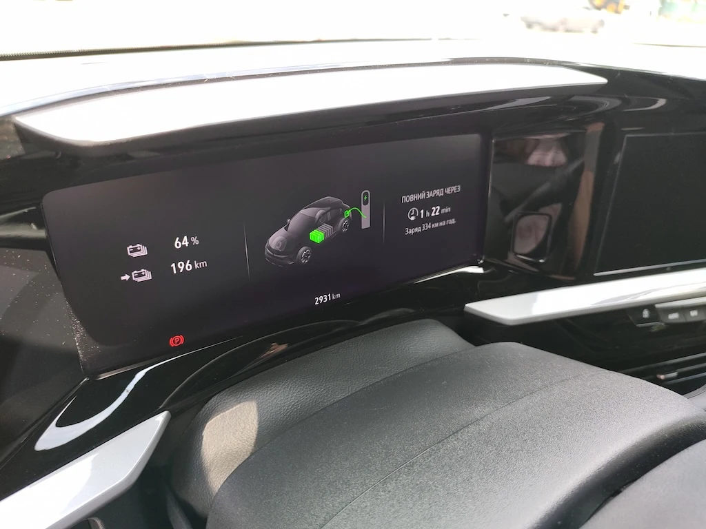 Електромотор Mokka-e видає рівно 100 кВт (136 к.с.), що звісно не робить з цього кросовера спорткар, але цього цілком достатньо для міських та трасових режимів. Тим більше у вашому розпорядженні крутний момент у 260 Н/м. І така поміркована потужність дозволяє бережливо витрачати енергію батареї. Адже питання автономності для електромобілів вже не стоїть настільки гостро, як раніше, але все ж таки є важливим.Отже на початку тест-драйву на повністю зарядженій батареї Мокка обіцяє проїхати 338 км, що цілком співпадає із заявленими даними: 324 км за циклом WLTP. Далі по ходу тесту пробіг і запас знижувалися пропорційно. Наприклад, проїхавши 46 км, бортовий комп`ютер показував запас ходу у 284 км. Трохи прискорень у спортивному режимі, і витрата енергії збільшуються, і на 64% запасу енергії кросовер обіцяє проїхати 194 км. Самий час підзарядитися!