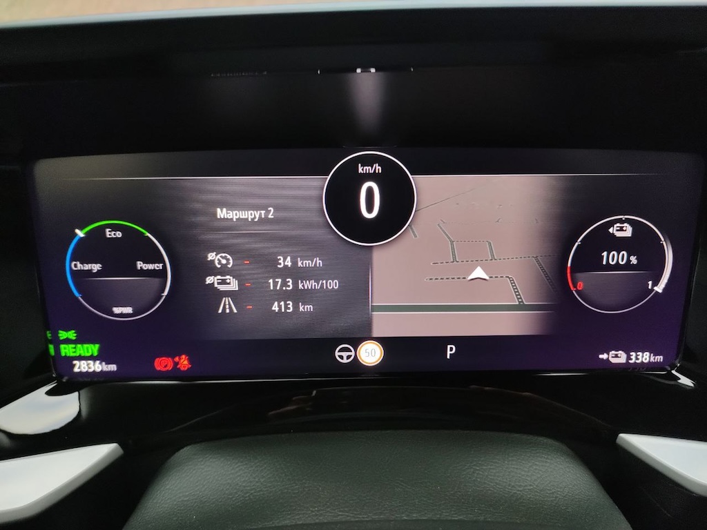 Щодо витрат енергії, то в місті вони складають 16-17 кВт*год на 100 км шляху. При чому отримати менше дуже непросто, навіть в Еко режимі, так само як і сягнути більше 18 кВт*год. Тож заявлений запас ходу тут цілком реально досяжний і на практиці, не лише на папері.