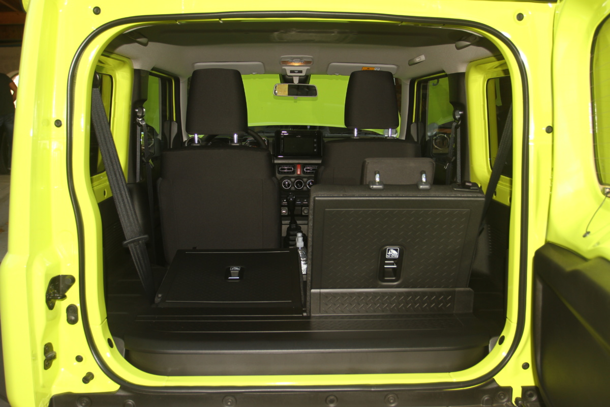Так длина автомобиля уменьшилась на 50 мм (3645 мм), хотя Jimny стал шире на 45 мм (1645 мм) и выше на 50 мм (1720 мм). Эти минимальные метаморфозы позволили сделать кроху чуть просторнее в салоне. Ведь длина автомобиля стала меньше в том числе и за счет менее глубоких бамперов и, соответственно, уменьшившихся свесов кузова.