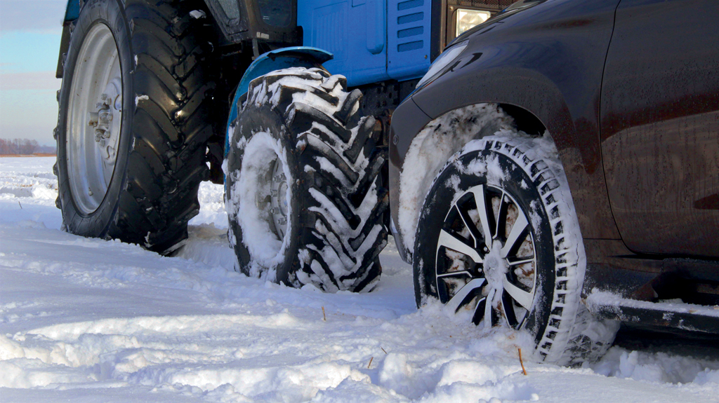 Картина ворогів із бездоріжжя, що стоять поруч, здається провальною для автомобіля. Кліренс 650 мм у трактора проти 218 мм у Pajero Sport, коробка передач МТЗ із 18 передачами (!) проти 8-ступінчастого автомата Aisin, трансмісія «Білоруса» з постійно замкнутим зчепленням, диференціалами, двома роздатками, редукторами відбору потужності проти системи Super Select II у Pajero Sport. Словом, у перемозі топового продукту Мінського тракторного заводу не було сумнівів. І спочатку так і було… Mitsubishi Pajero Sport навіть із ввімкненим зимовим режимом Mud/Snow системи Super Select II, програвав на старті у перших двох заїздах: ні режим зниженої передачі, ні примусове блокування диференціала не рятували від жорсткого букса і заривання у сніг, змішаний з м’яким озимим ґрунтом. У цей час «Білорус», спокійно граючи щитками над колосальними 38-дюймовими колесами, йшов уздовж тестової лінії до фінішу на горизонті і навіть встигав перекурити. Технічна пауза змусила нас впритул засісти за налаштування Pajero Sport. Сніг проходив дедалі глибше під одяг, забивався в радіатор, під арки, всередину підвіски і взагалі почувався господарем становища, доки Pajero Sport не намацав… зачіп! Уся справа у взаємозв’язку електроніки з фізикою: щоб рушити і вирвати Pajero Sport з проблемного ґрунту, треба було використовувати режим 4LLc (жорстке блокування диференціала зі зниженою передачею), який забезпечує ривок, але не є бажаним для їзди на швидкості. Враховуючи, що максимальна швидкість МТЗ-80 близько 40 км/год – Mitsubishi Pajero Sport на стометрівці обійшов трактор за всіма параметрами!