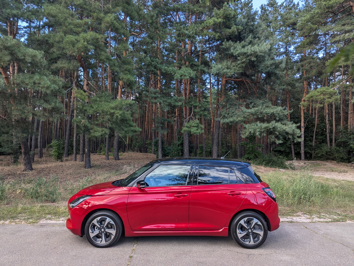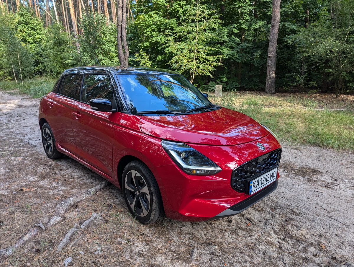 Swift не тільки відчуває себе немов риба у воді у міському потоці, але й полюбляє звивисті дороги. Він охоче пірнає в повороти та намагається чітко слідувати за траєкторією, яку ви йому задали. Але іноді ходова буває і натякне, що непогано було збавити швидкість і не вдавати, що ти за кермом спорткара. Навіть попри класний червоний колір. Тож на мою думку комфортна ходова (спереду тут стійкі Мак-Ферсон, а позаду напівзалежна балка) з нотками спортивності – це те що треба для такого автомобіля. Додам також, що радіус розвороту тут 4,8 метра, тобто на вузькій вулиці можна без проблем розвернутись у три заходи.