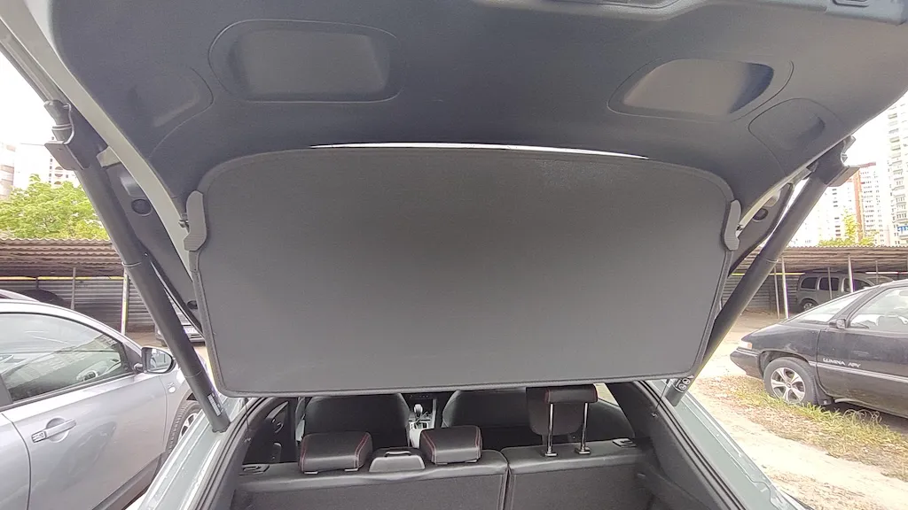 Щодо практичності, а саме простору та місця для багажу, то тут нічого особливо не змінилося. Розмір багажного відділення в 456 л чималий для кросовера довжиною 4,2 метра. Сподобалася практична шторка багажника, яка піднімається разом із кришкою багажнику. До речі, сама кришка має електропривід.