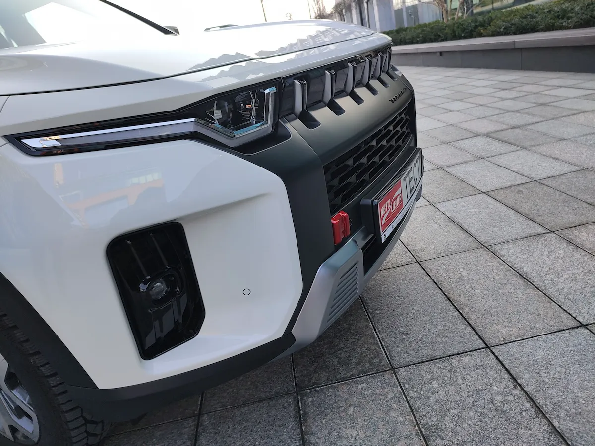 Кросовер виглядає доволі оригінально. Брутальний образ у деяких елементах перегукується з позашляховиками інших марок, але загалом він самобутній. Виразні форми та грубуваті лінії демонструють техно-стиль із акцентом на впевненість і силу. Особливо мені подобається рішення решітки радіатора у поєднанні з формою світлодіодної оптики. Капот із помітними виштамповками виглядає потужно, а елементи на ньому, що імітують кріплення офроуд-обладнання, насправді є суто декоративними.